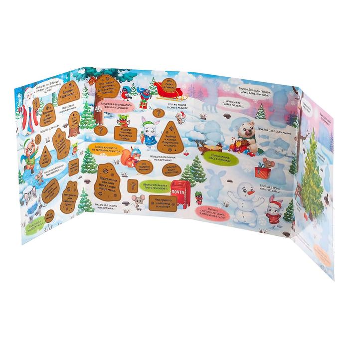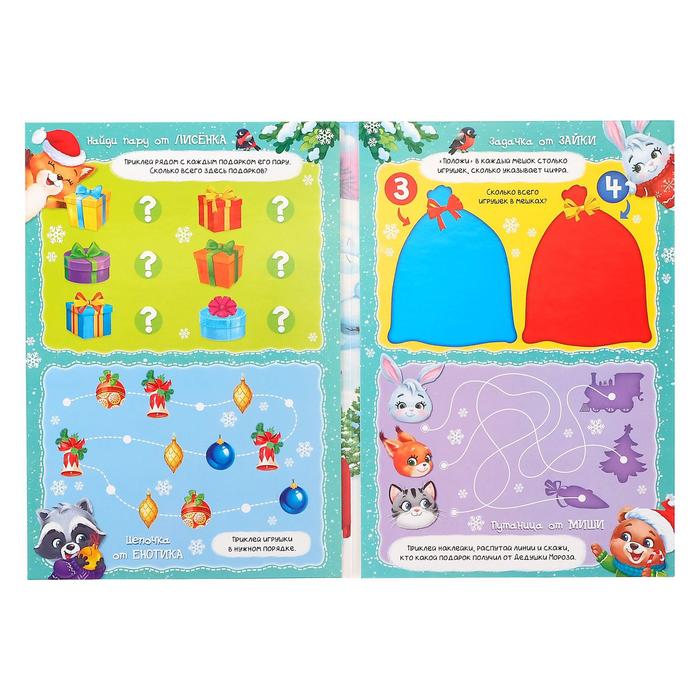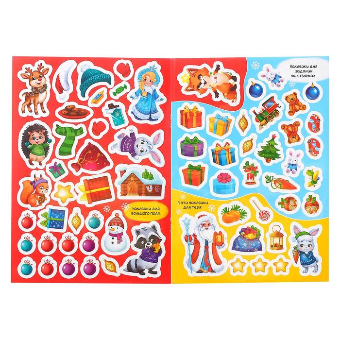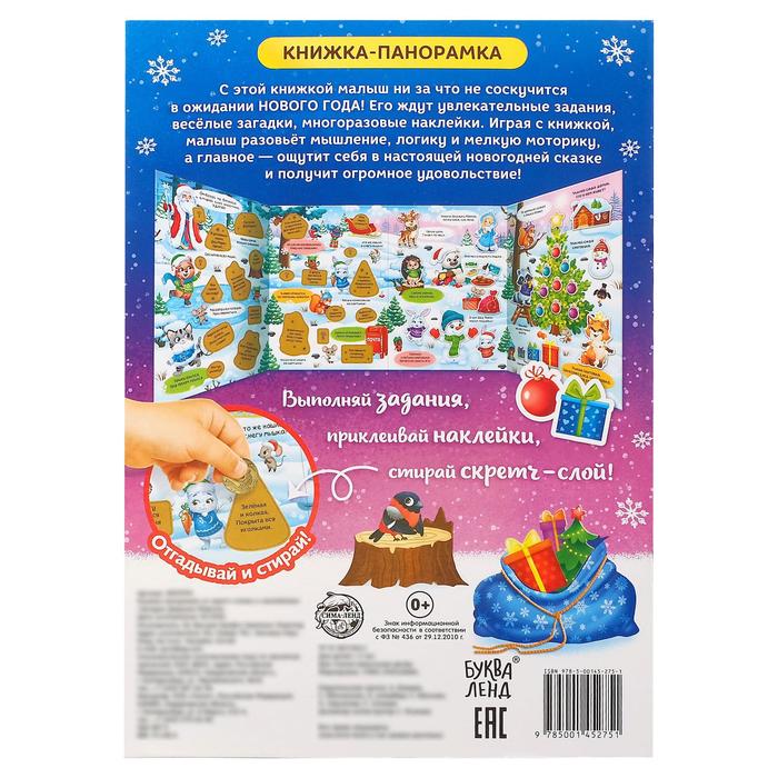 Книжка-панорамка со скретч-слоем и наклейками «Загадки Дедушки Мороза» 4859394