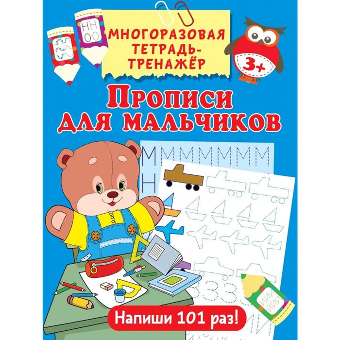 <p>Прописи для мальчиков — многоразовая рабочая тетрадь для будущего первоклассника. Предложите малышу обводить маркером на водной основе линии, картинки, буквы. Малыш научится правильно и аккуратно писать буквы, не боясь ошибиться — любую ошибку можно легко исправить!</p><p>Для дошкольного возраста. </p>