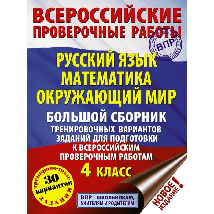 <p>Книга предназначена для подготовки учащихся 4-х классов к итоговой аттестации за курс начальной школы. Учащиеся познакомятся со структурой и содержанием всероссийской проверочной работы по русскому языку, математике, окружающему миру, узнают о количестве заданий, их форме и уровне сложности. Для отработки школьниками навыка выполнения проверочных работ в книге предлагается 30 вариантов тренировочных заданий по всем предметам. Работа с пособием позволит выявить уровень готовности младших школьников к выполнению ВПР и своевременно провести необходимую коррекционную работу.</p><p>Структура, содержание и объём тренировочных заданий соответствуют демоверсиям всероссийской проверочной работы по русскому языку, математике и окружающему миру. Для удобства работы в пособие также включены варианты диктантов, кодификаторы и ответы ко всем заданиям.</p><p>Работа с пособием поможет выпускникам начальной школы быстро и качественно подготовиться к выполнению всероссийских проверочных работ.</p><p>Книга адресована учащимся 4-х классов, их родителям, учителям начальных классов.</p>