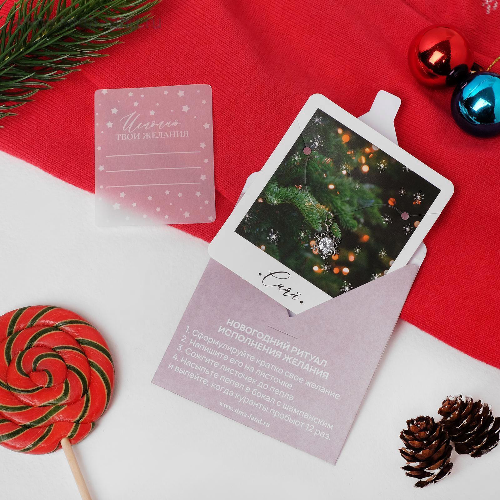 Кулон "Новогодний" загадай желание, снежинка, цвет белый в серебре, 30 см 4980311