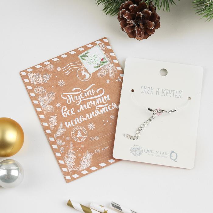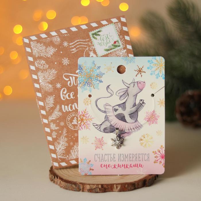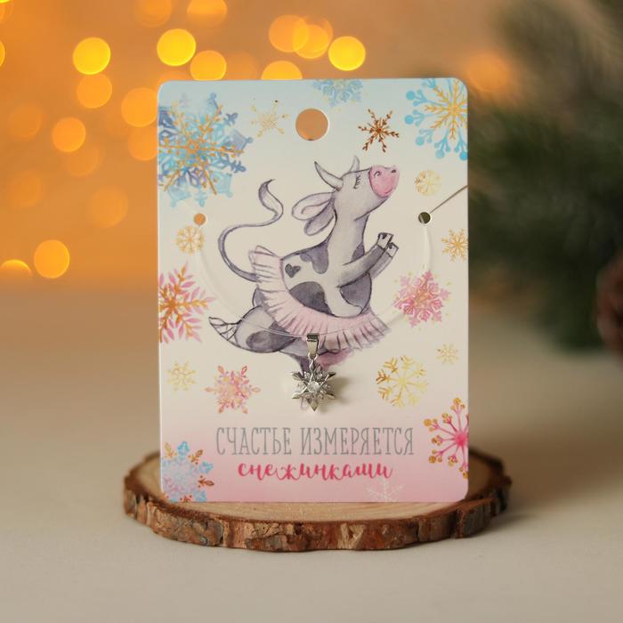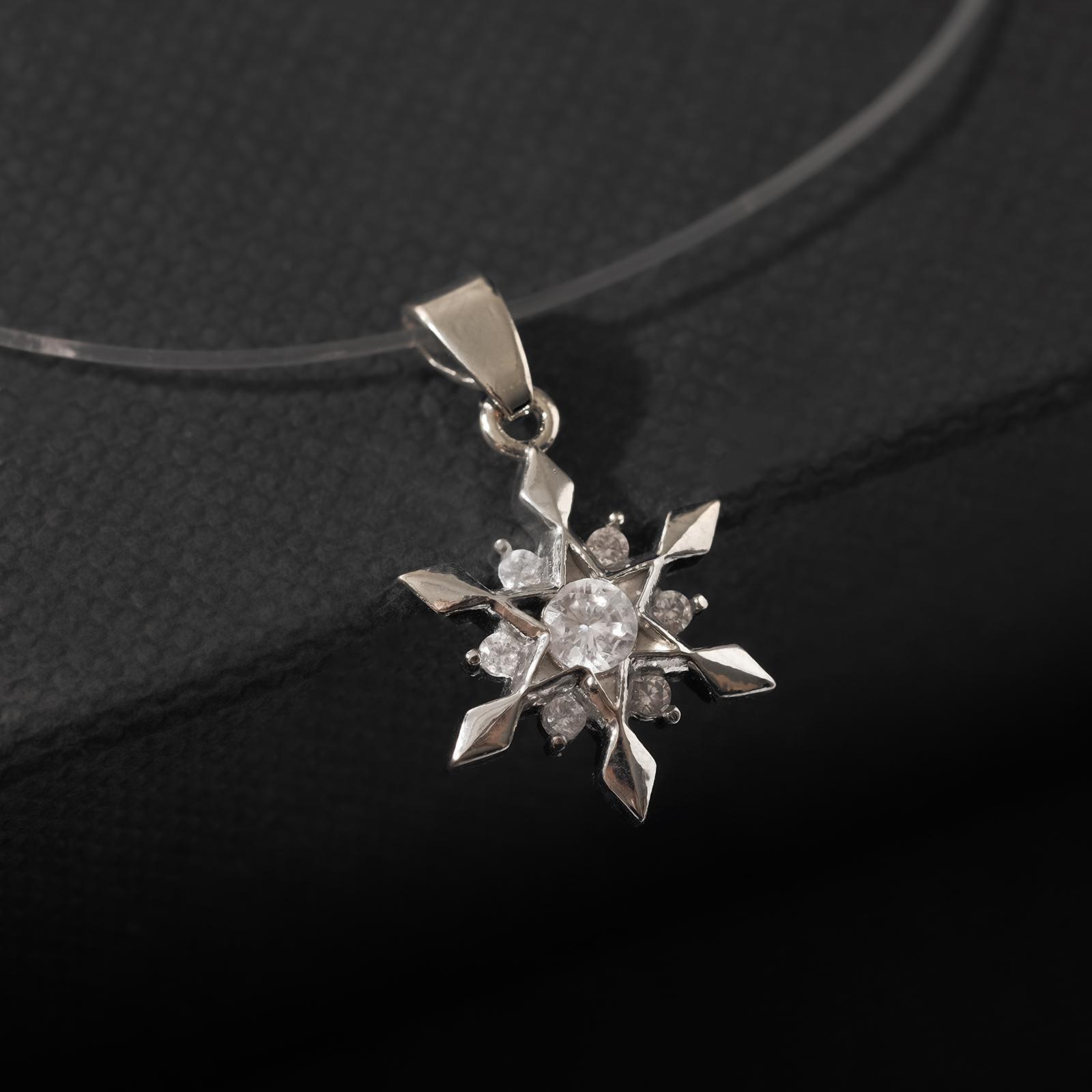 Кулон "Новогодний" на леске, снежинка, цвет белый в серебре, 30 см 4938082