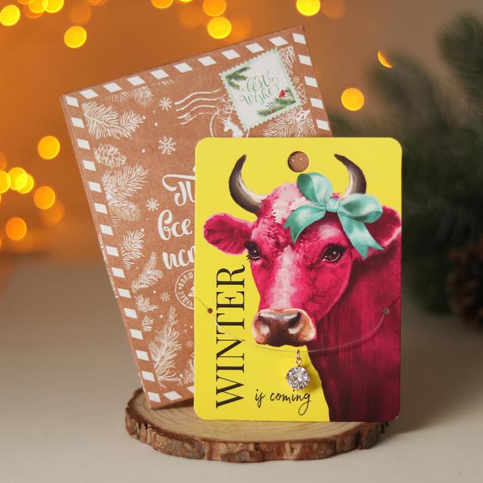 Кулон "Новогодний" на леске, стиль, цвет белый в золоте, 30 см 4938077