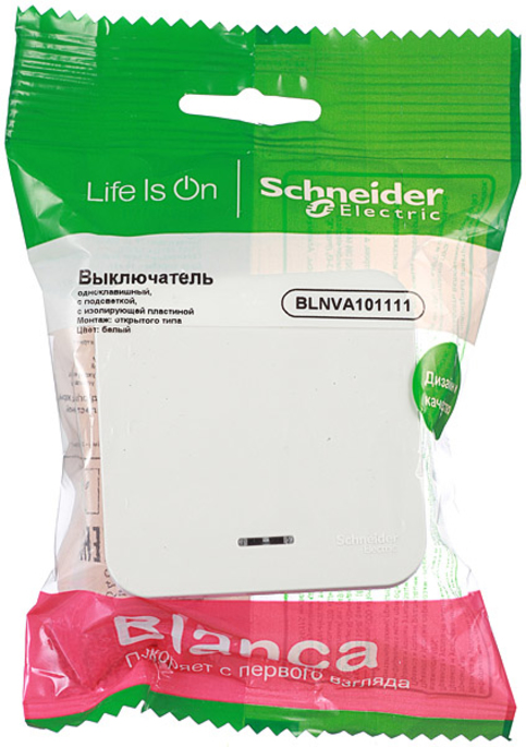 Выключатель oдноклавишный с подсветкой о/у Schneider Electric Blanca белый