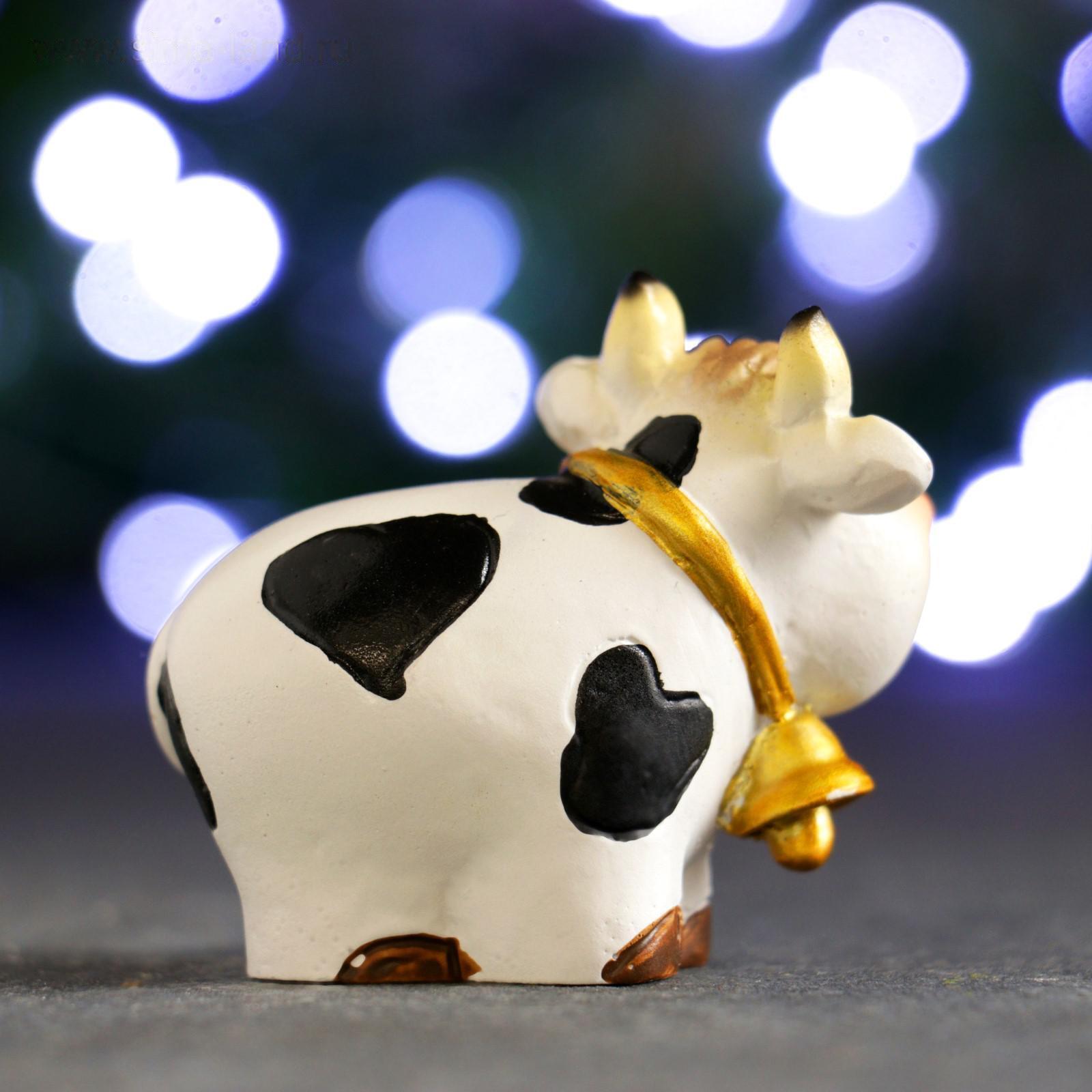 Фигура "Символ года: Бычок с колокольчиком" пятнистый, 6х6,3х5см 5138051
