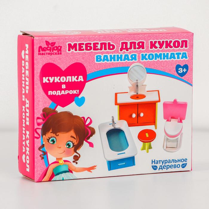 Мебель для кукол «Ванная комната» + куколка в подарок 4663055