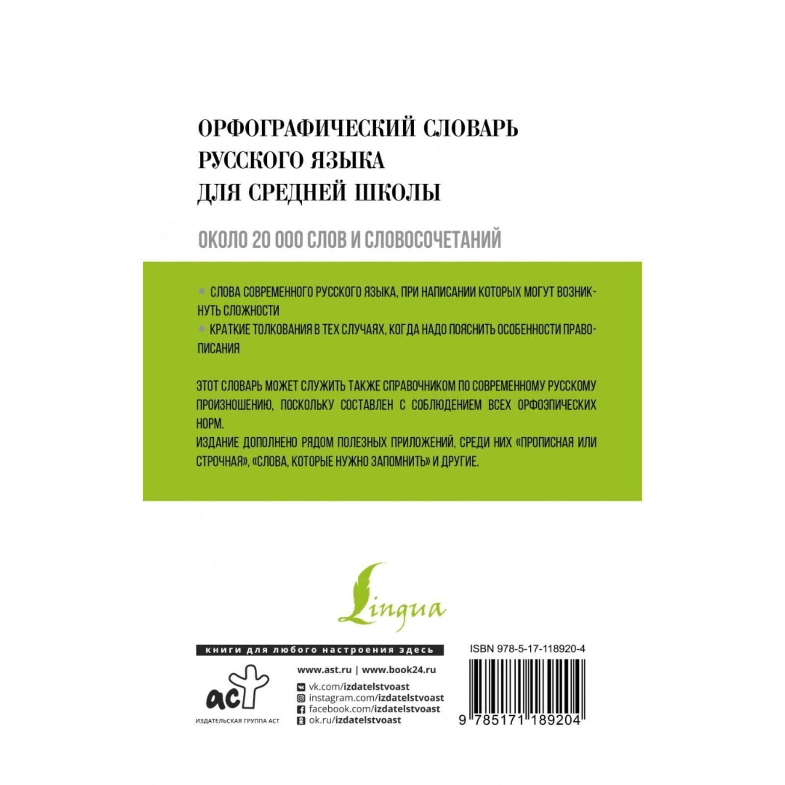 Данный словарь содержит около 20 000 слов и словосочетаний. В него вошли слова современного русского языка, при написании которых могут возникнуть сложности. В тех случаях, когда надо пояснить особенности правописания, даются краткие толкования. Словарь может также служить справочником по русскому произношению, так как составлен с соблюдением всех орфоэпических норм. Издание дополнено полезными приложениями: «Прописная или строчная», «Слова, которые нужно запомнить (словарные слова)», «Мужские имена, отчества», «Женские имена» и «Города России и названия их жителей». Словарь адресован учащимся средней школы. Однако он может быть полезен также студентам и всем, кто хочет грамотно писать по-русски.
