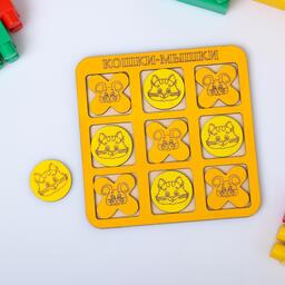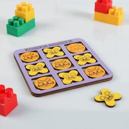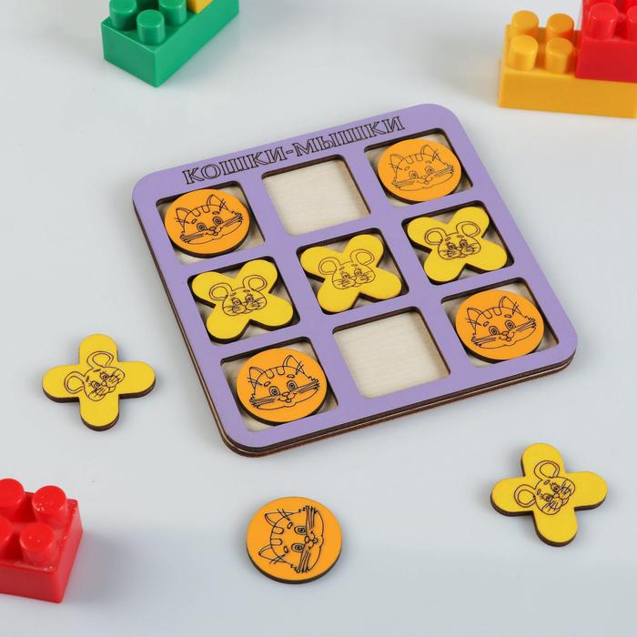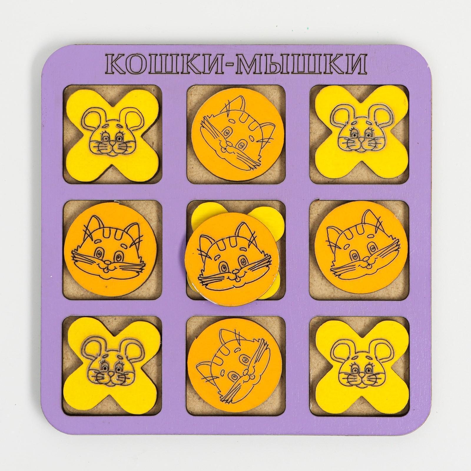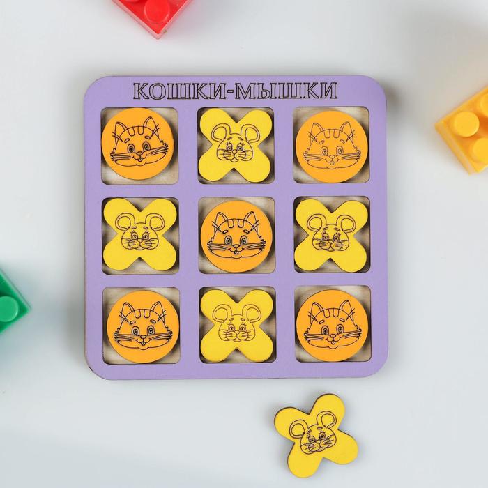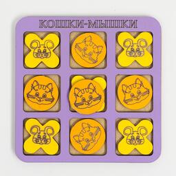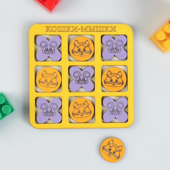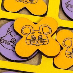 Всем знакомая игра "Крестики-нолики" для детей, где на крестиках и ноликах изображены мышки и котики.