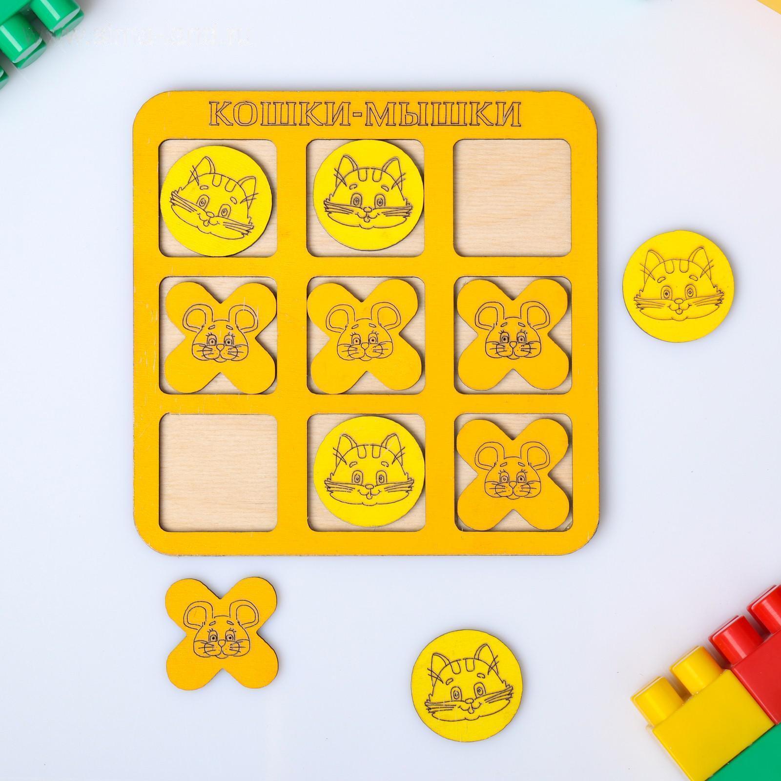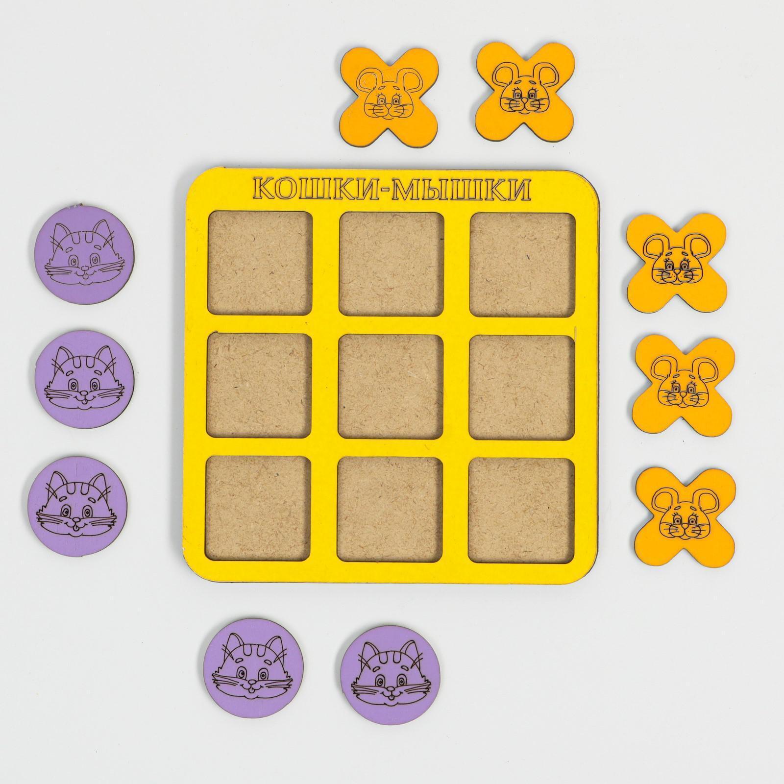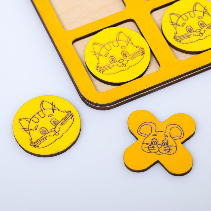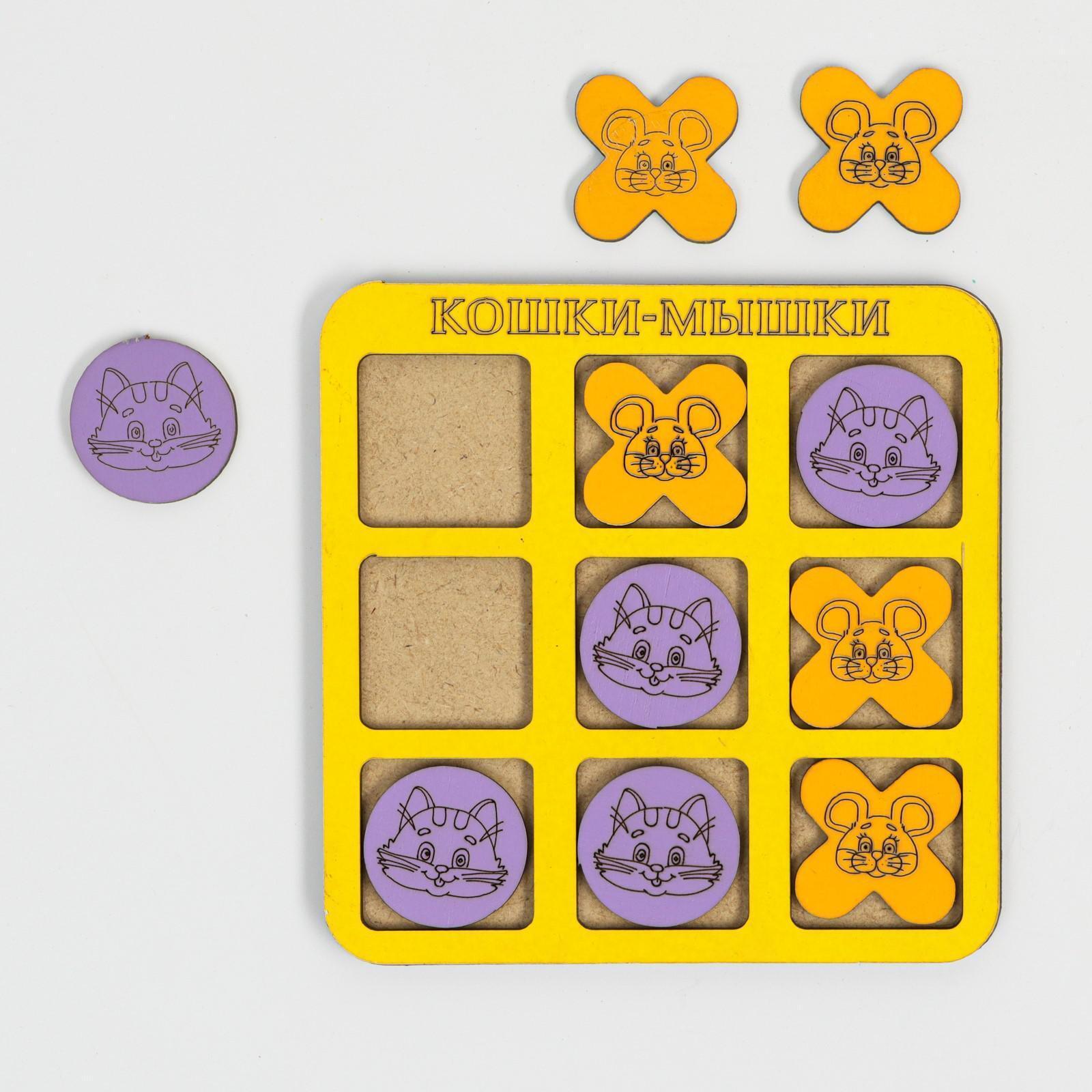 Всем знакомая игра "Крестики-нолики" для детей, где на крестиках и ноликах изображены мышки и котики.