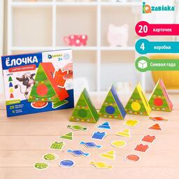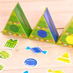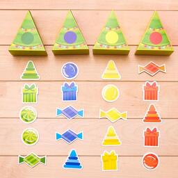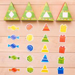 Бычок Гаврюша с нетерпением ждёт Нового года и решает украсить ёлочки новогодними игрушками. Но задание это не из лёгких. Каждую игрушку необходимо отсортировать по цвету и геометрической форме и соотнести с лесной красавицей.