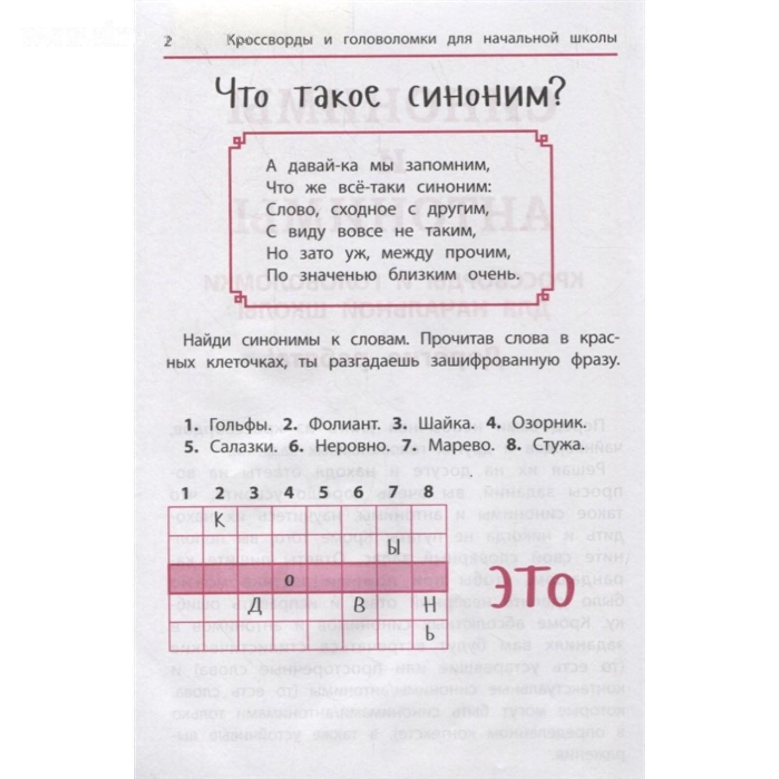 Синонимы и антонимы: кроссворды и головоломки для начальной школы 5141147