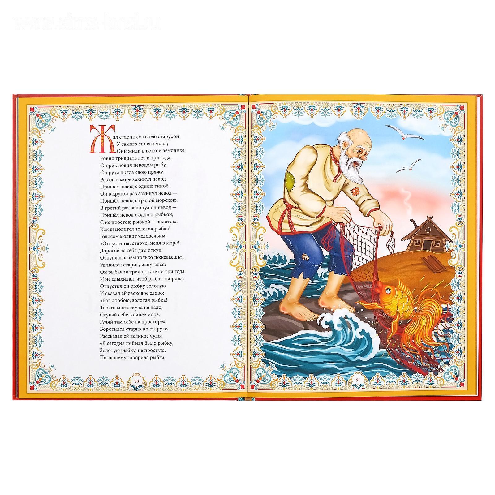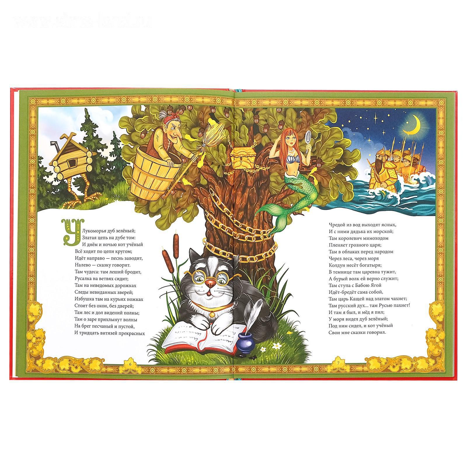 Сборник сказок Александра Сергеевича Пушкина с яркими картинками и красочным оформлением поможет занять ребёнка, развить фантазию и привить любовь к чтению.