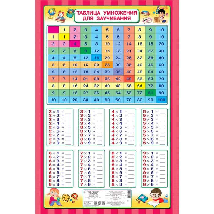 <p>Плакат «Таблица умножения для заучивания» — прекрасный подарок для любого школьника младших классов. Известно, что самое сложное — выучить наизусть таблицу умножения. Этот плакат поможет без особого труда выучить таблицу умножения. Для этого достаточно повесить его на стену перед рабочим местом ученика: то, что постоянно перед глазами, быстро и легко запоминается. Пособие для заучивания таблицы умножения пригодится любому школьнику. </p><p>Плакат можно использовать для обучения детей дома или в школе. </p><p>Для начального образования. </p>