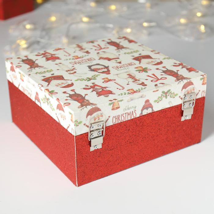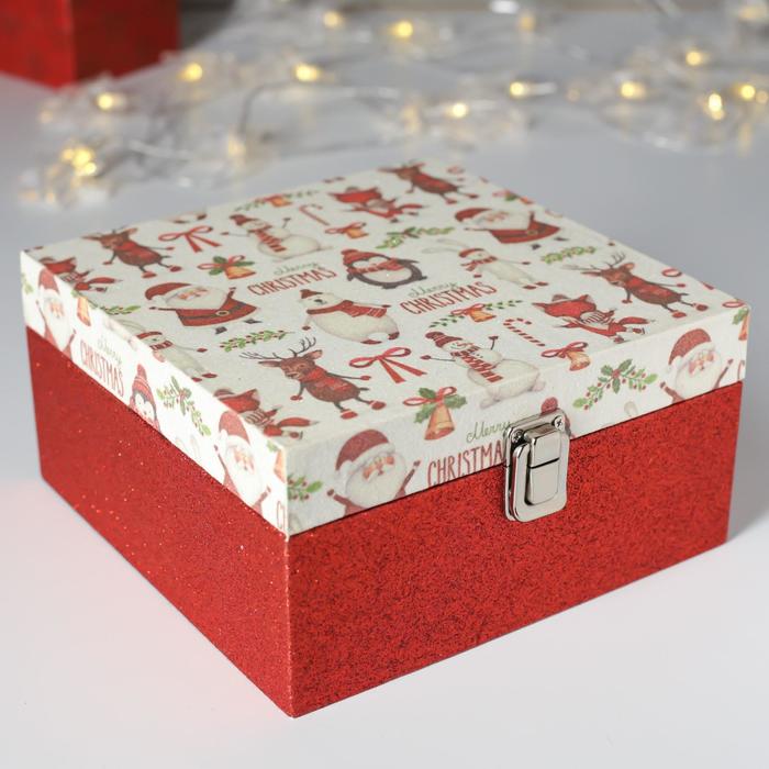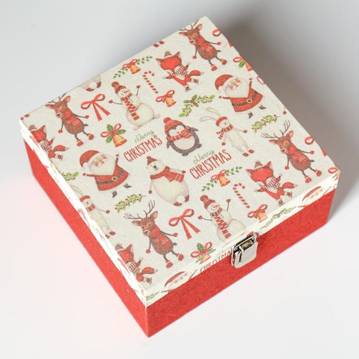 Шкатулка дерево "Снеговик с друзьями" блёстки 10х20х20 см 4825610
