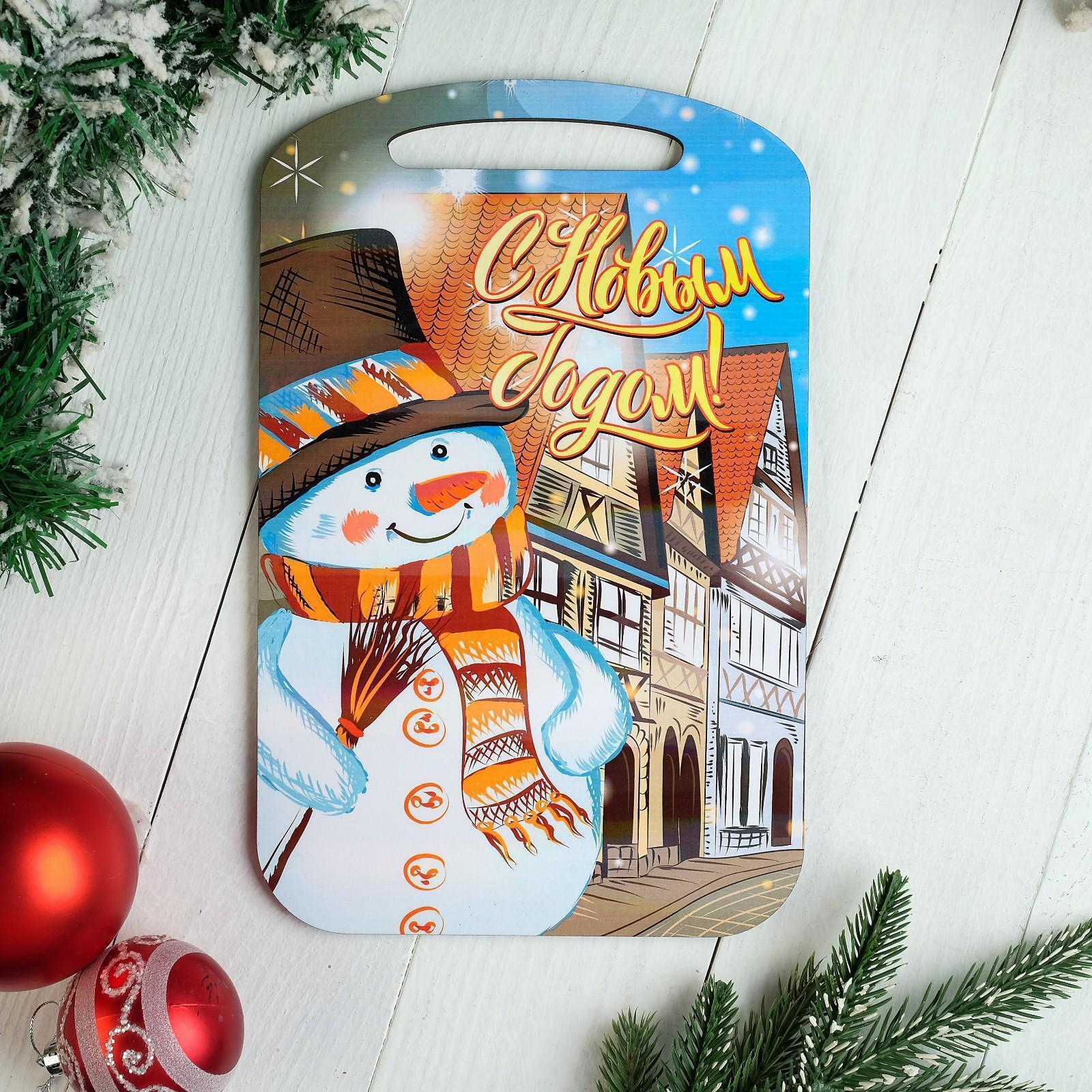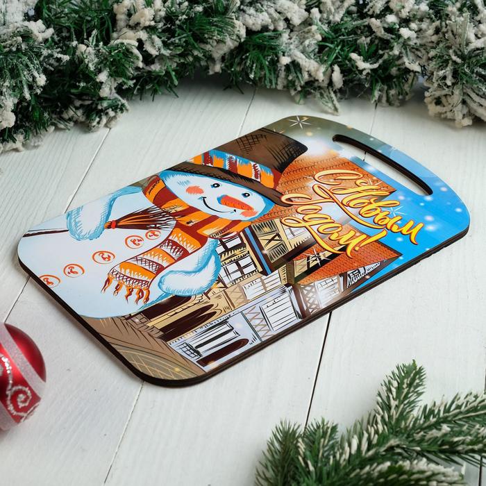 Доска разделочная "Новогодняя. С Новым годом! Весёлый снеговичок", цветная, 27х18 см 5129075
