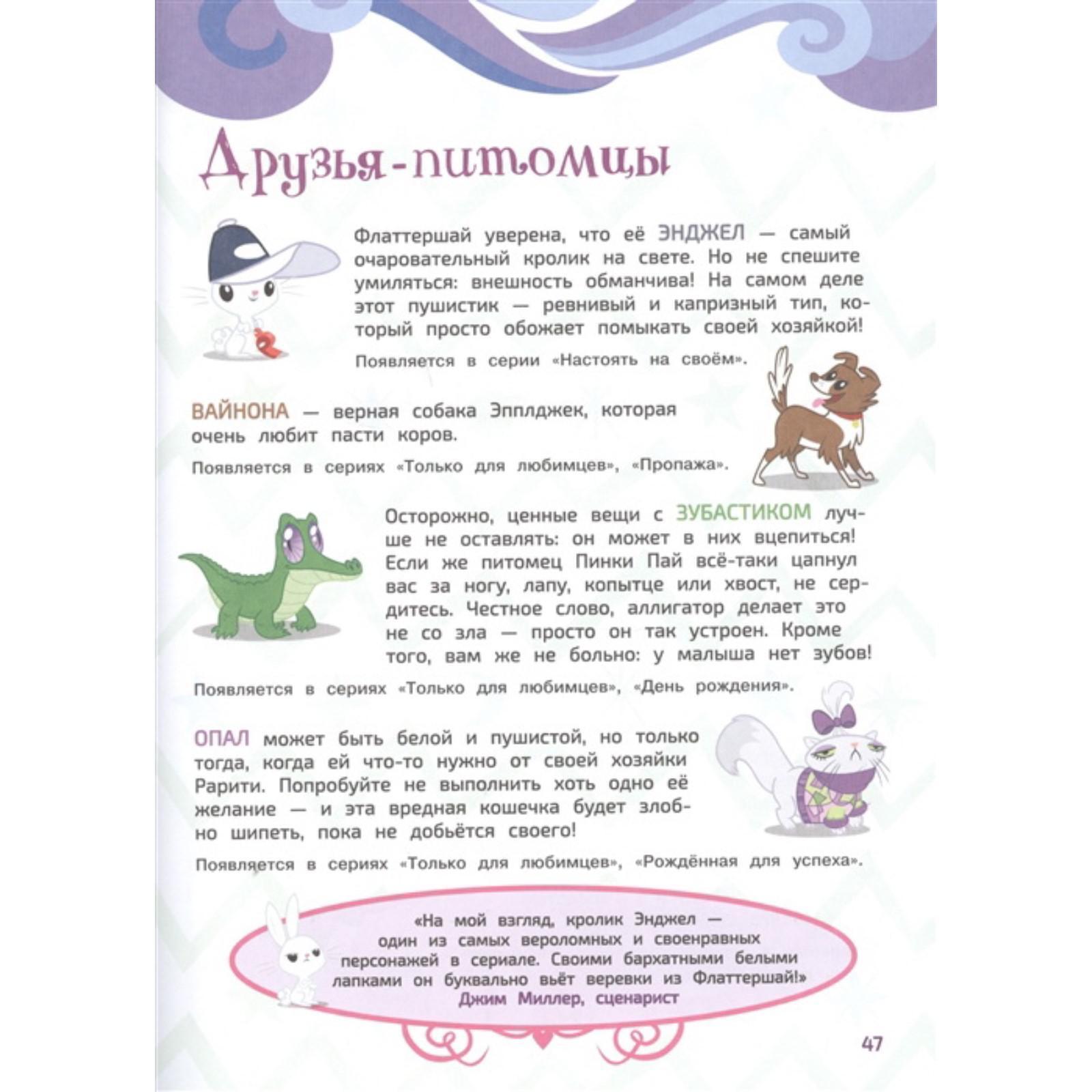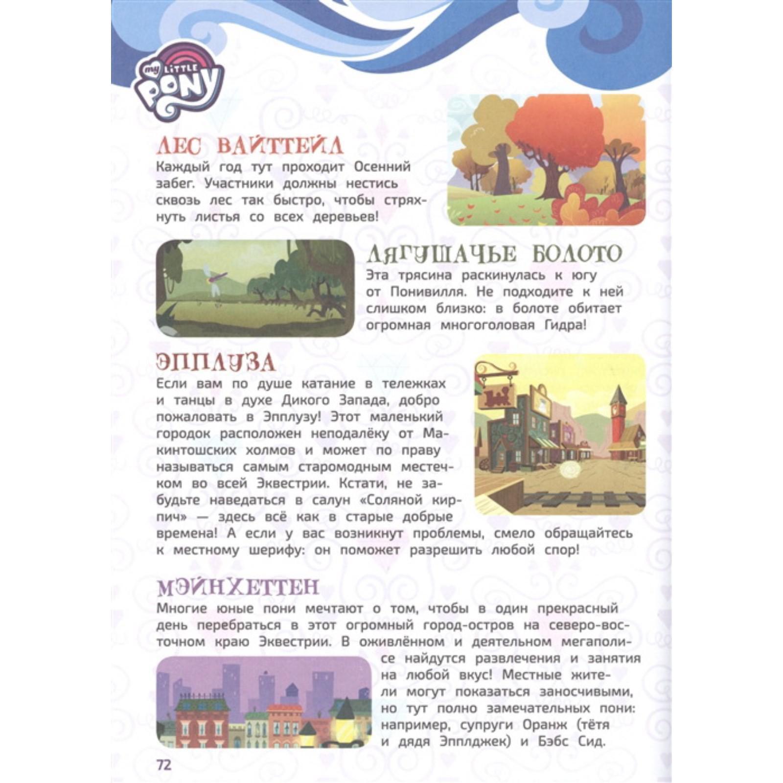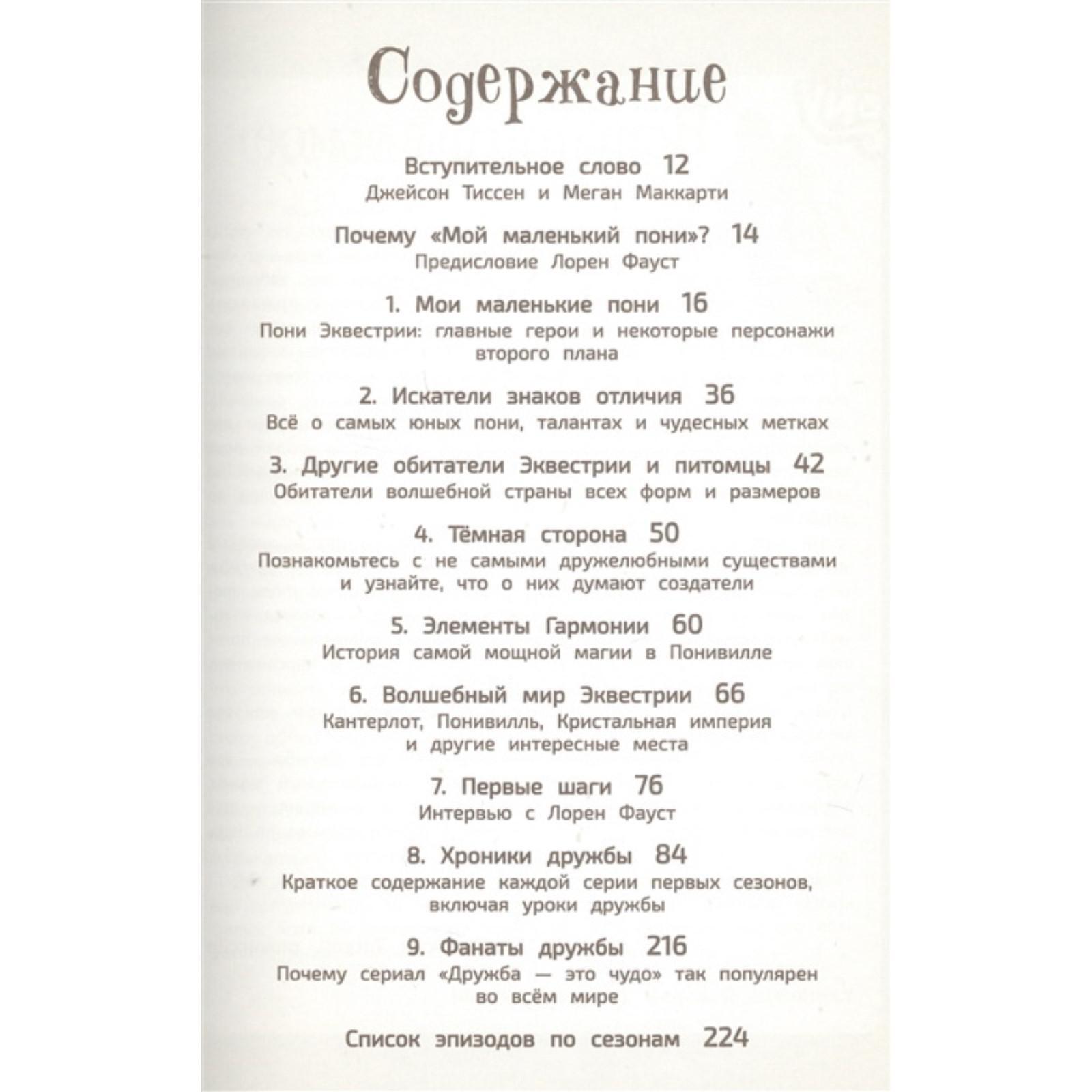 На страницах официального путеводителя по мультсериалу «Мой маленький пони: Дружба — это чудо» вас ждут интервью с создателями, концепт - арты, характеристики Элементов Гармонии, мест и персонажей, краткое содержание каждой серии первых сезонов, включая уроки дружбы, — всё это обязательно понравится как преданным любителям сериала, так и тем, кто только начинает знакомство с вселенной пони!