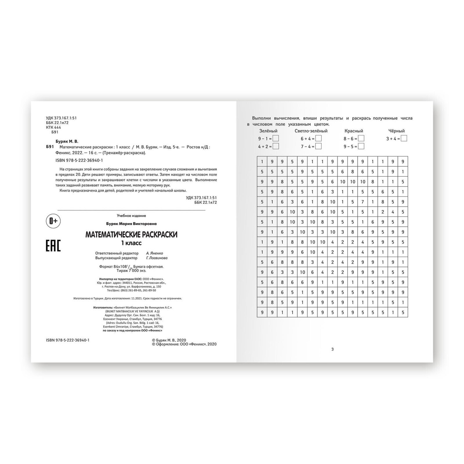 «Математические раскраски: 1 класс», Буряк М.В. 5141146