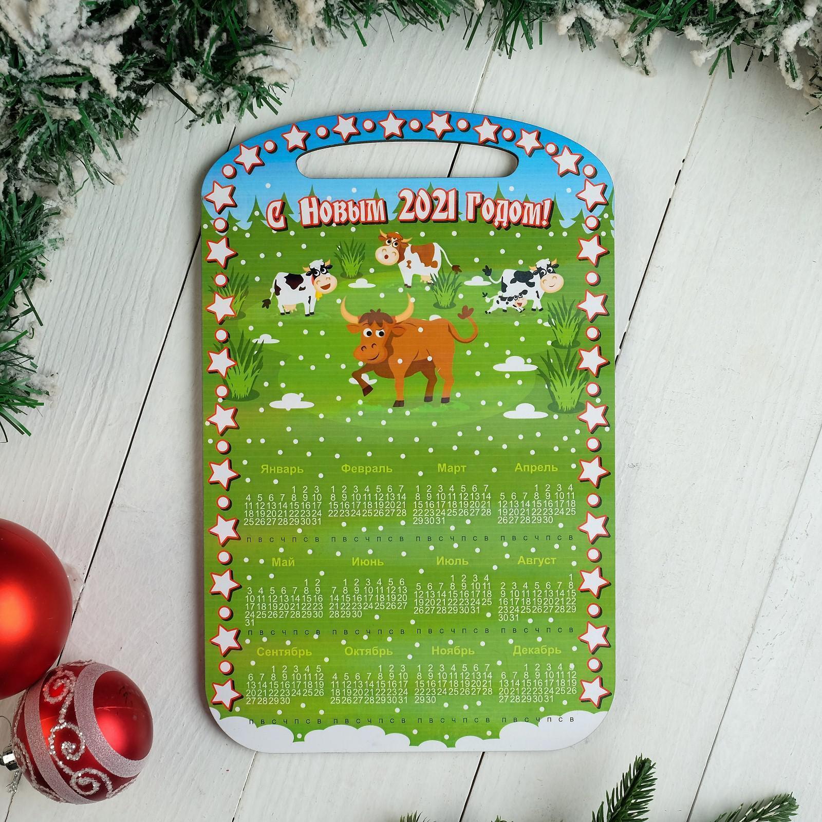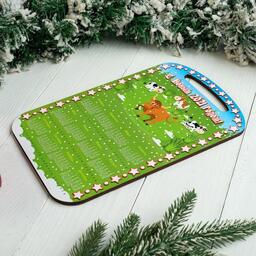 Доска разделочная "Символ года 2021. Календарь. Бык и коровки", цветная, 27х18 см 5129085