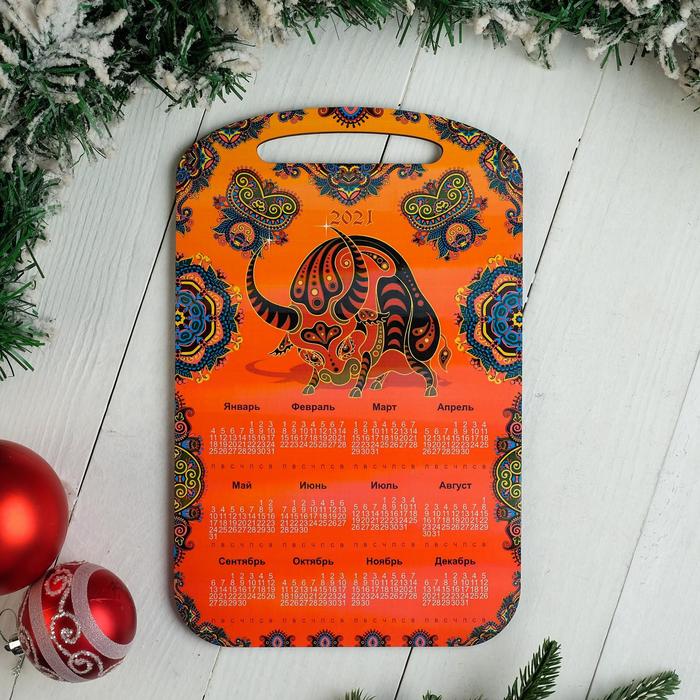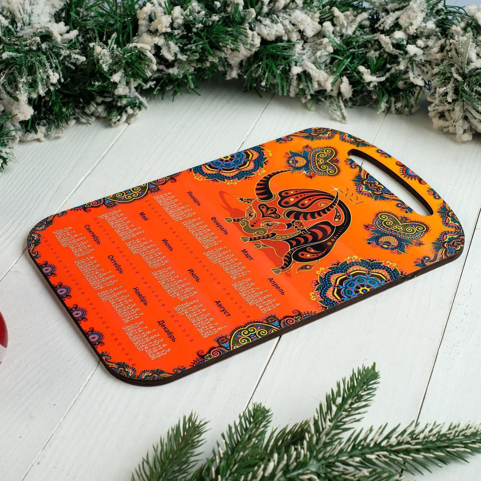Доска разделочная "Символ года 2021. Календарь. Бык ажур", цветная, 27х18 см 5129080