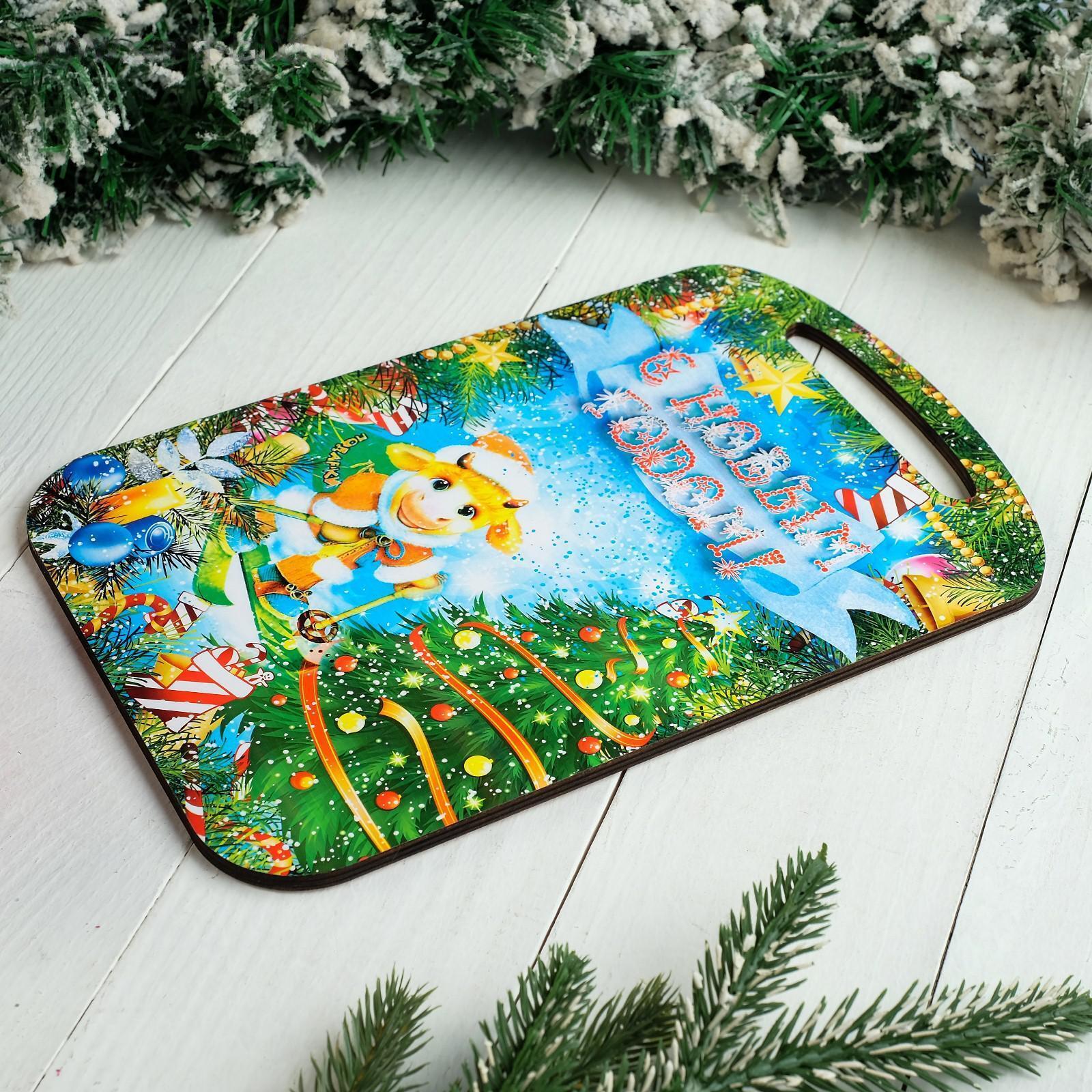 Доска разделочная "Символ года 2021. Бычок новогодний", цветная, 27х18 см 5129064