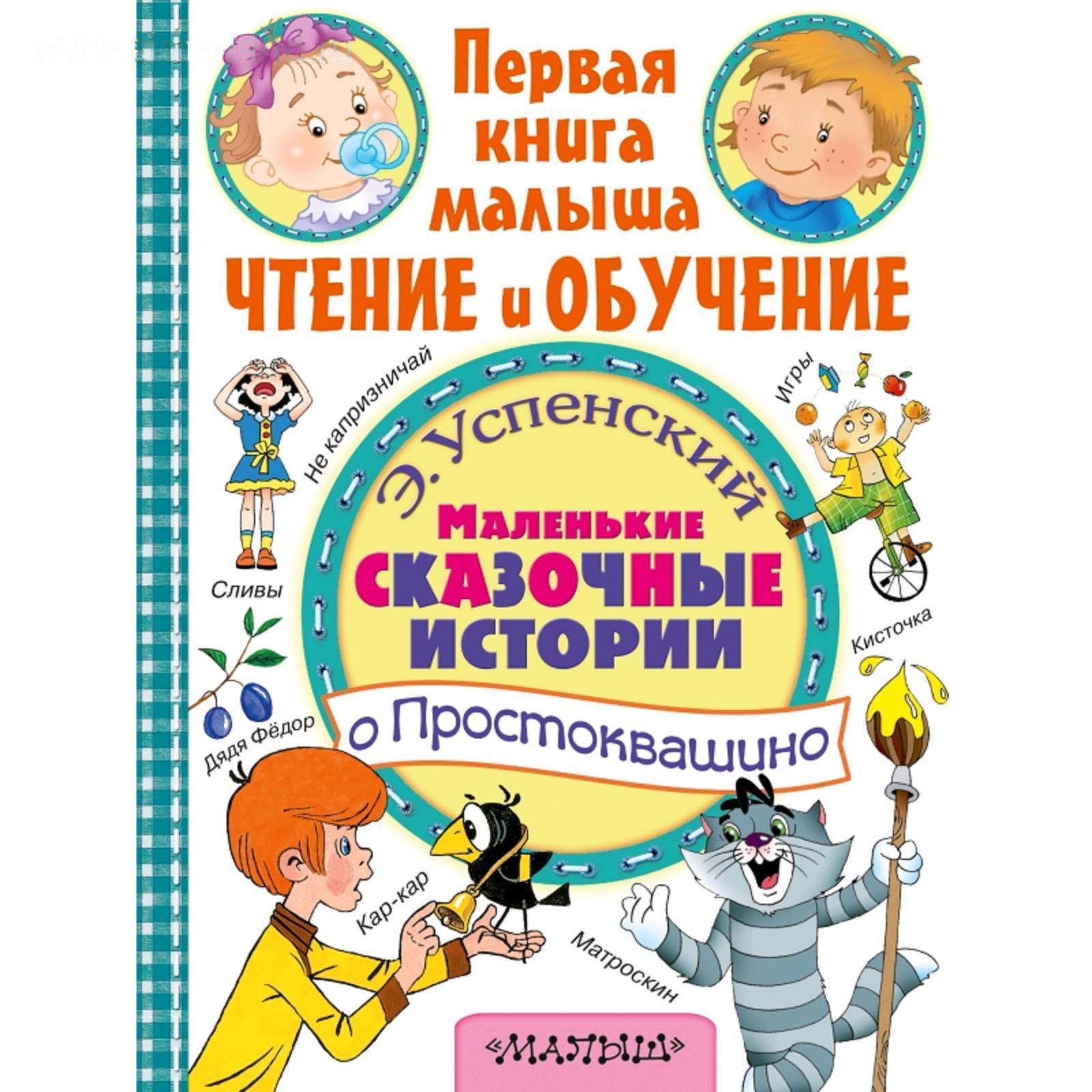 Книга «Маленькие сказочные истории о Простоквашино» Э. Успенского очень хорошо подходит для чтения и обучения малышей. Прочитайте детям коротенькие произведения про весёлых жителей знаменитой деревни, а потом покажите им картинки в верхней части книжки. Эти картинки собраны по темам, которые ваш малыш должен будет узнать до поступления в школу. Дети научатся правильно себя вести, узнают о деревенском быте, побывают внутри деревенского домика, увидят, какие бывают инструменты. Кот Матроскин расскажет маленьким почемучкам, какие бывают цвета и как они получаются!