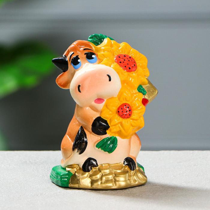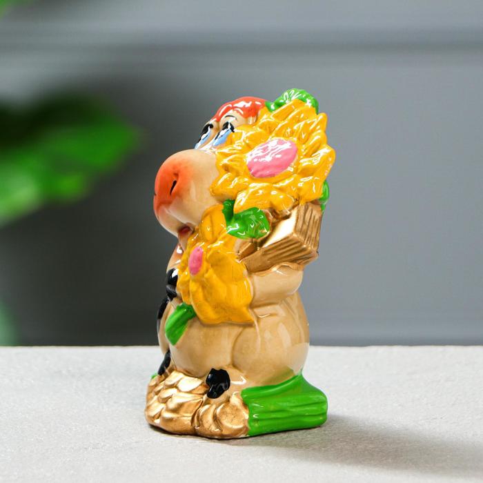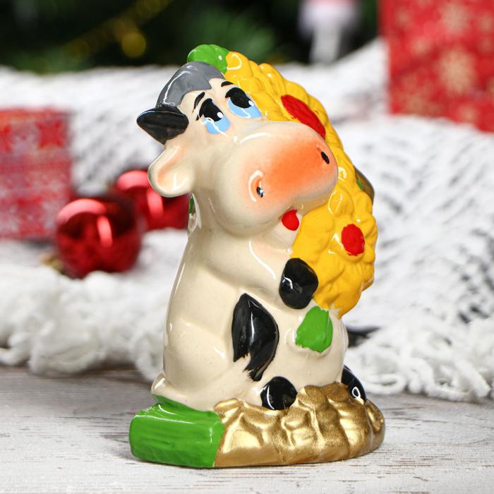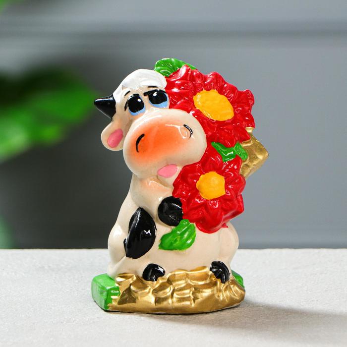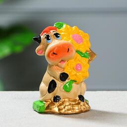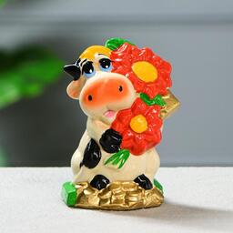 Копилка "Коровка с букетом", символ года 2021, разноцветная, 13 см, микс 5081750