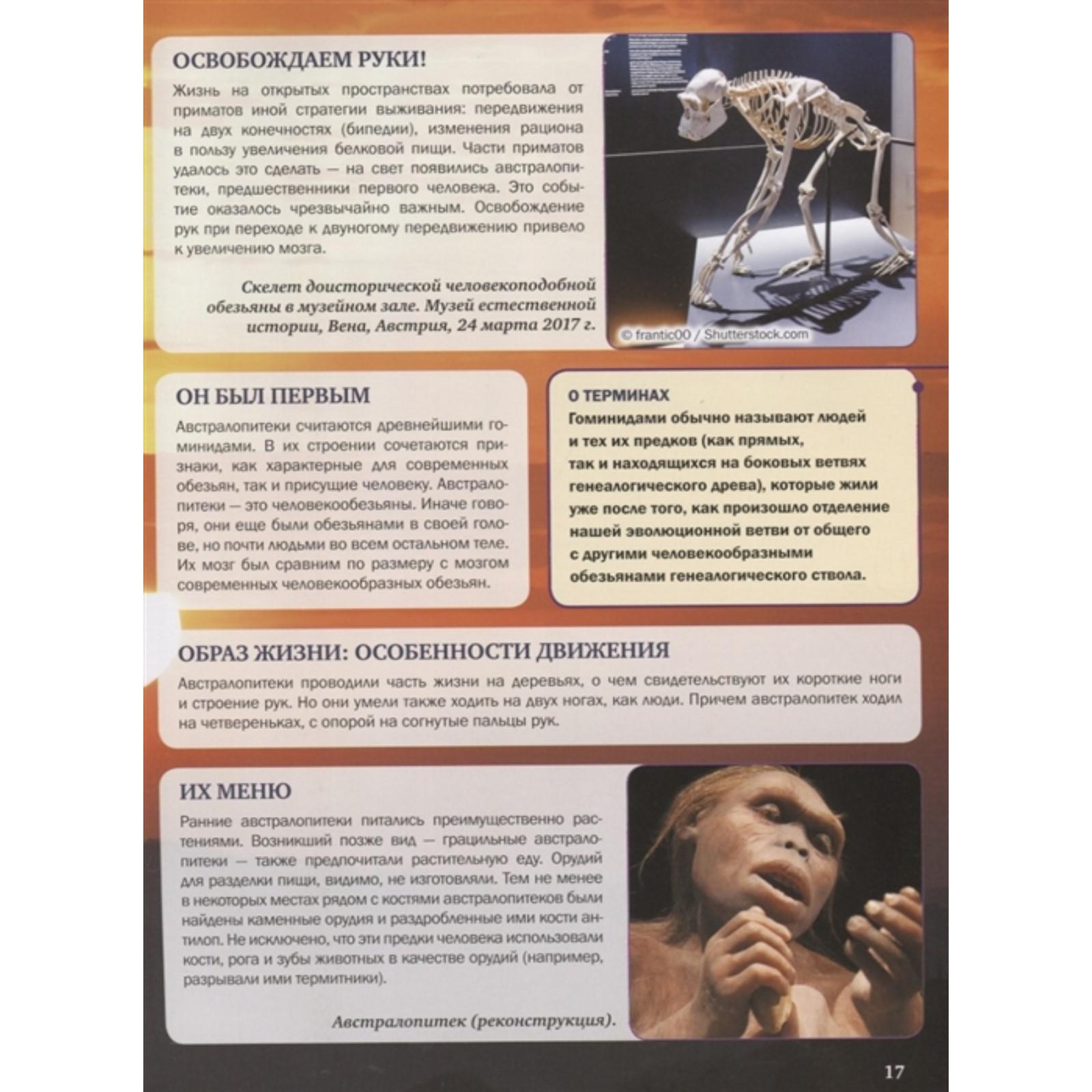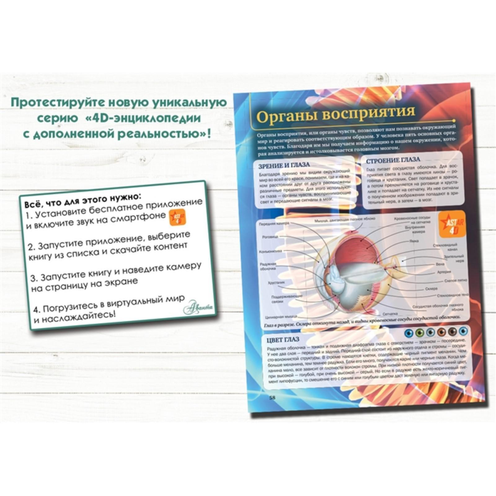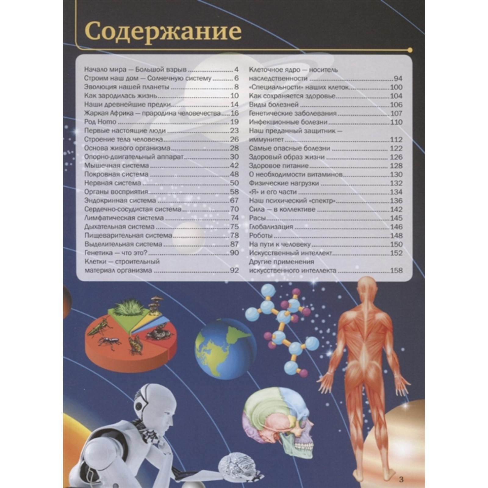 Эта 4D - энциклопедия с дополненной реальностью расскажет обо всех этапах становления человека - начиная с возникновения Вселенной и заканчивая той самой минутой, когда вы читаете эту книгу. Зарождение живых организмов и их эволюция, развитие первобытного человека и анатомия современного, механизмы наследственности и сила иммунитета, эмоции и чувства людей и бесстрастность роботов - все это вы найдете на страницах данного издания. А «живые» иллюстрации покажут, как функционирует сердце и где находится печень, заставят австралопитека помахать вам рукой из прошлого, а робота - исследовать космос, познакомят с самыми маленькими нашими «врагами» - вирусами и бактериями. Каждую анимацию дополняет познавательная звукозапись. Откройте эту необычную энциклопедию и узнайте больше о себе и мире, частью которого является каждый из нас.