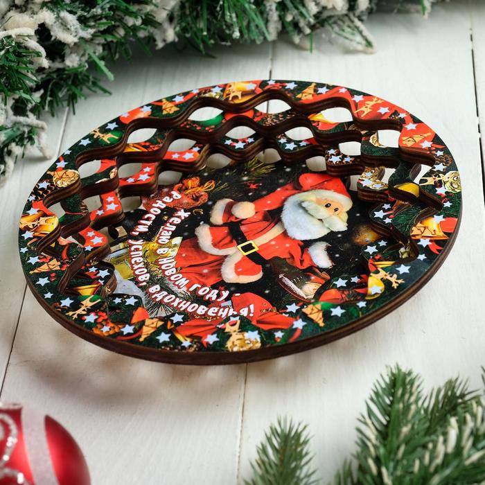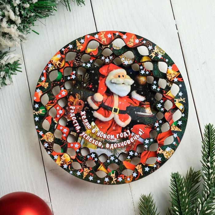Тарелка сувенирная деревянная "Новогодний. Дед Мороз игрушка", цветной 5129112