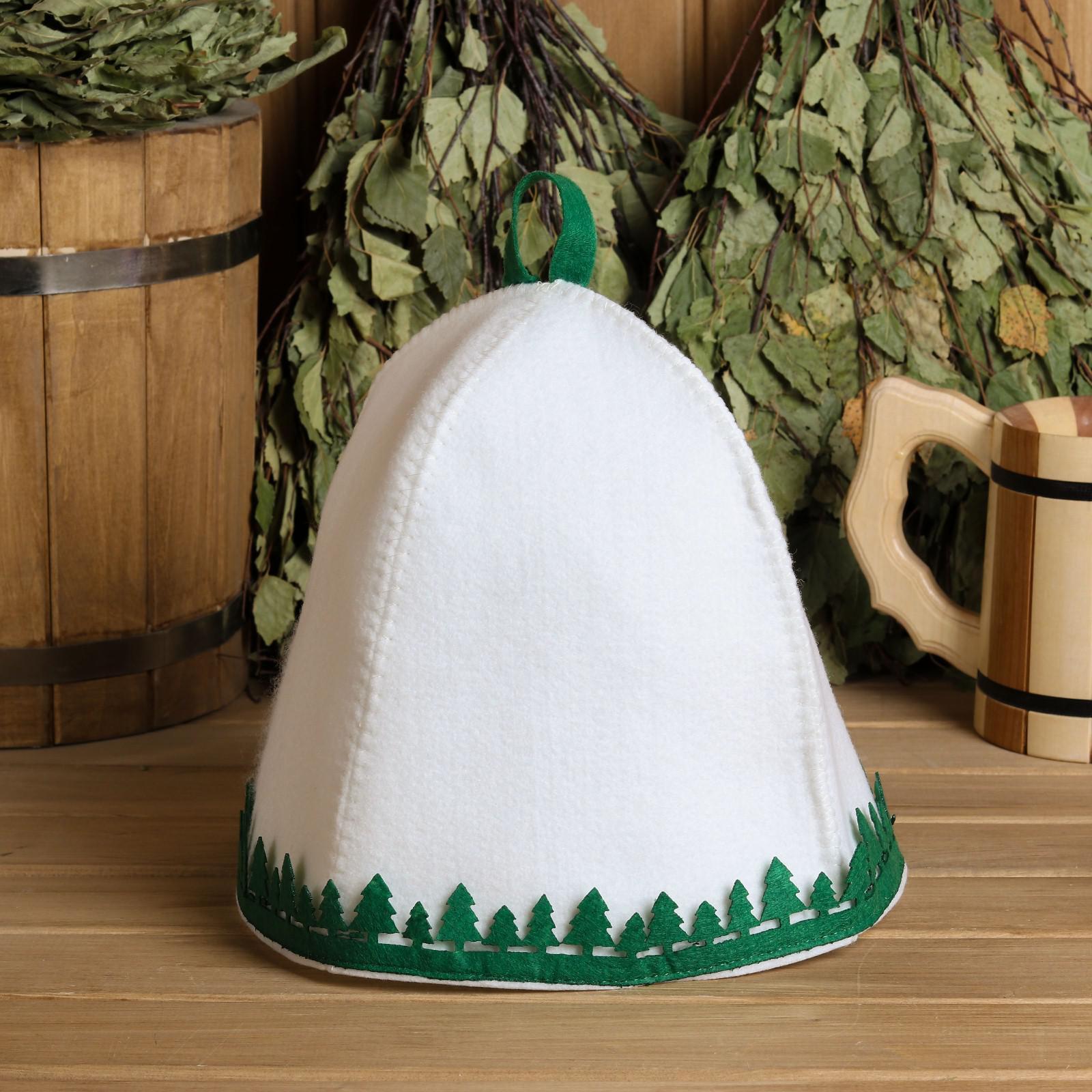 Шапка банная с аппликацией "Елки", цвет белый 5167945