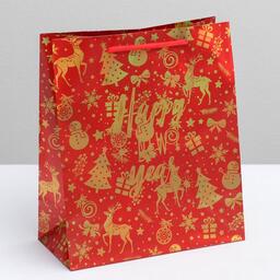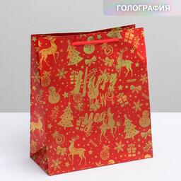 Пакет голография вертикальный «Веселья в Новом году», ML 23 × 27 × 11,5 см 5047724