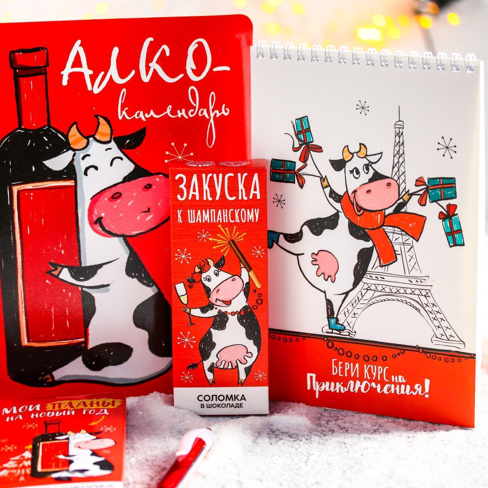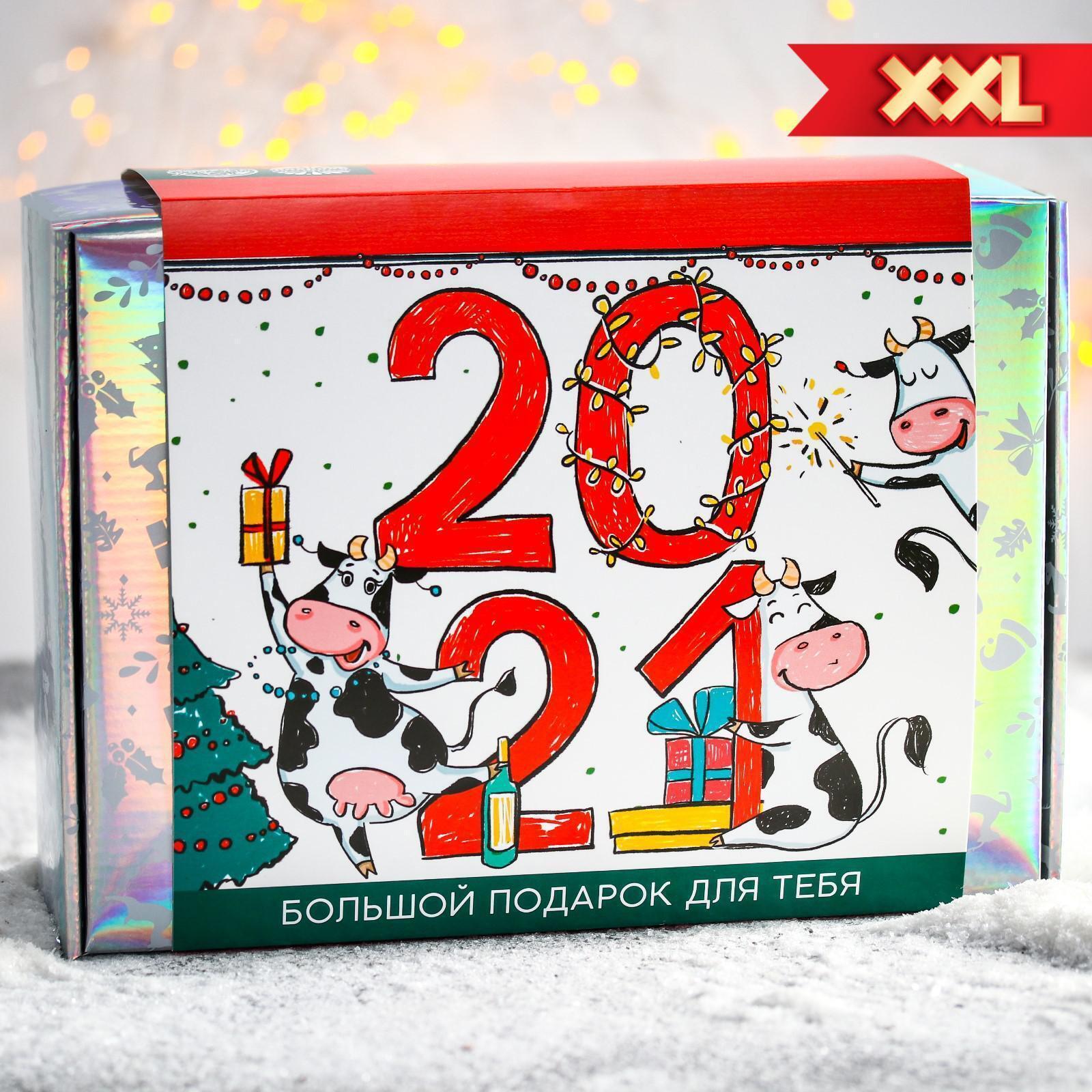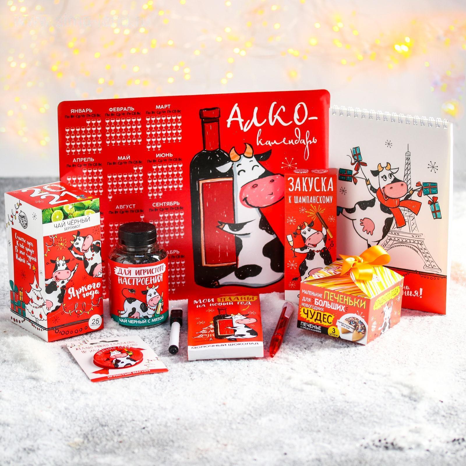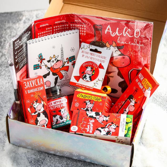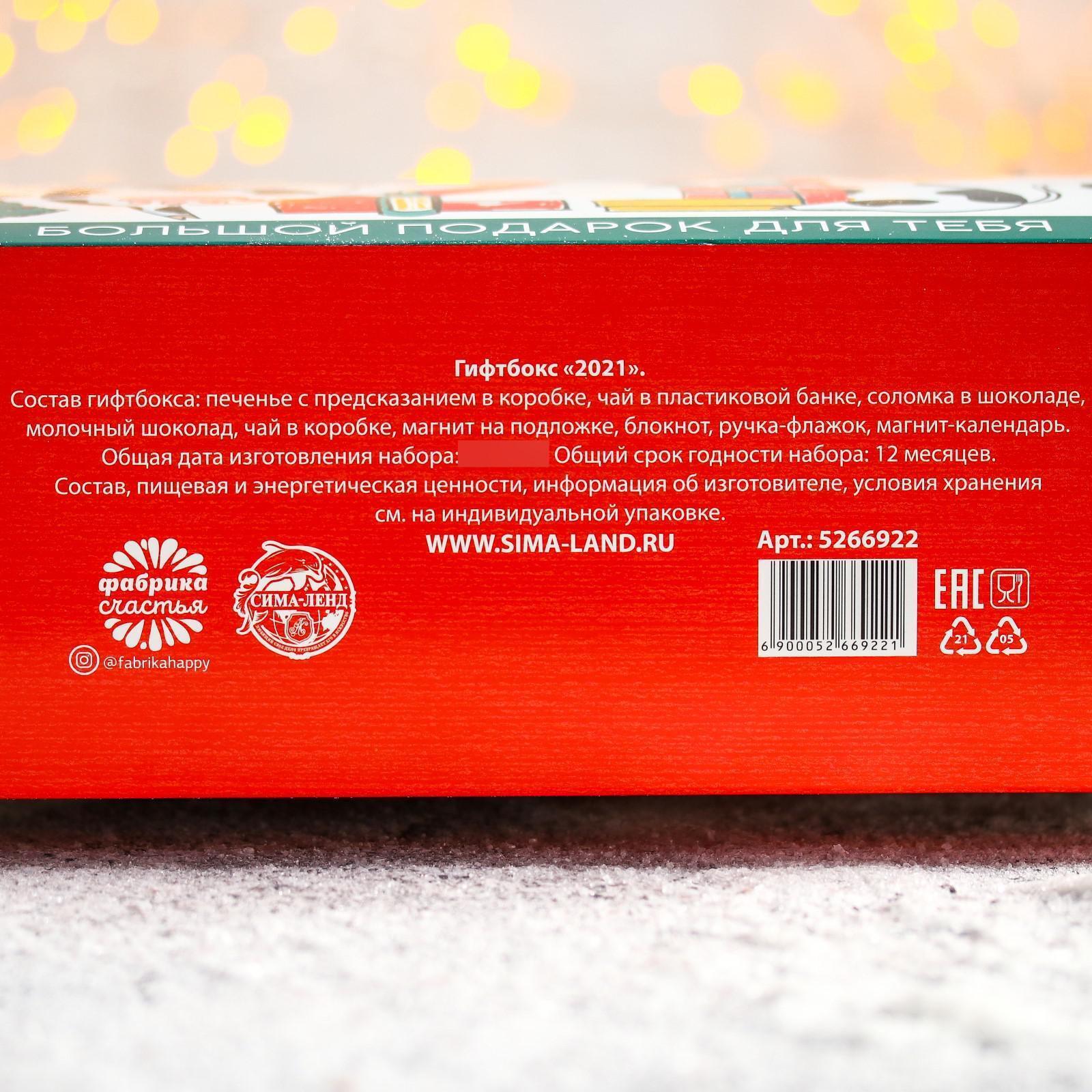 Гифтбокс подарочный «2021»: печенье с предсказанием 3 шт., магнит-календарь, ручка флажок, чай 50 г, соломка в шоколаде 25 г, шоколад 85 г, чай с бергамотом 25 п, магнит 5266922