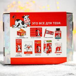 • Составляющие набора Блокнот, Магнит, Печенье, Ручка, Чай, Шоколад