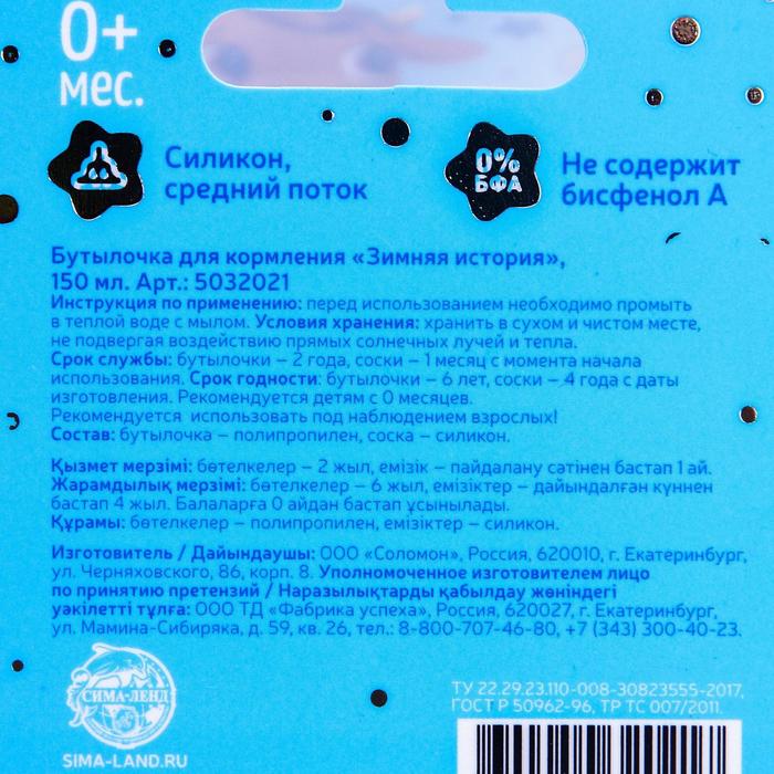 Бутылочка для кормления "Зимняя история" 150 мл цилиндр, с ручками 5032021