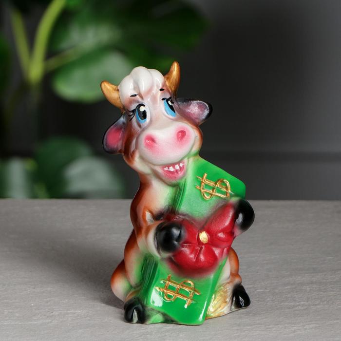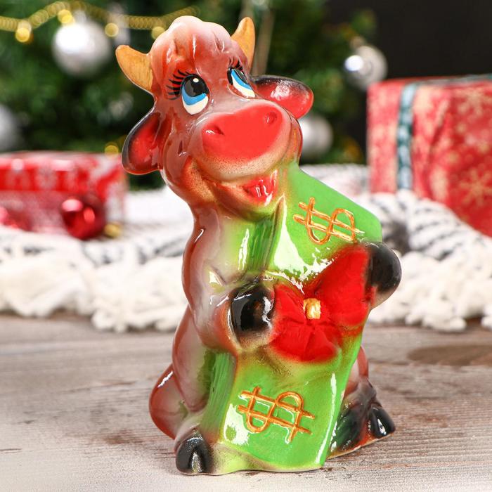 Копилка "Бычок с бантом", 16 см, коричневая, микс 5376294