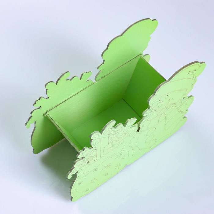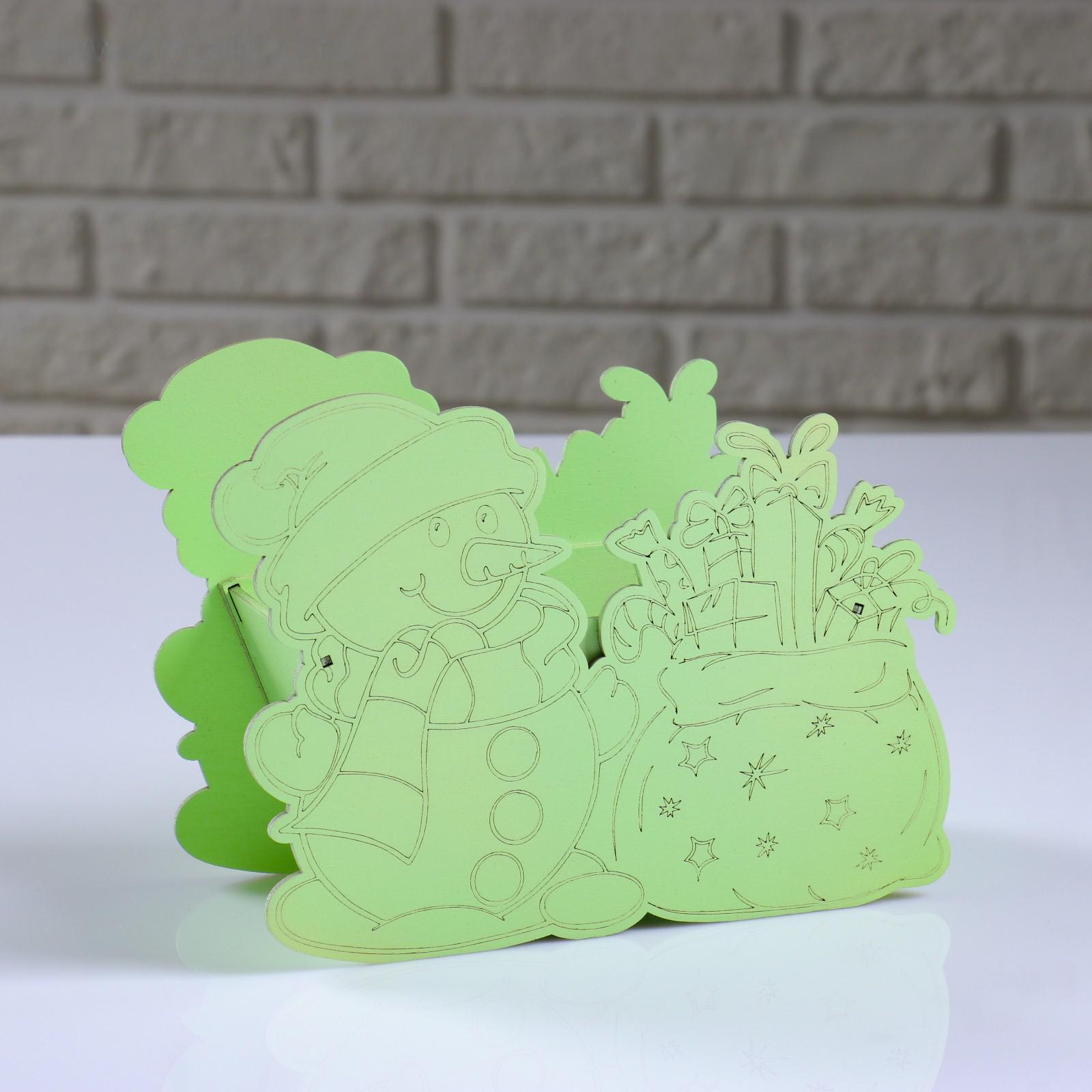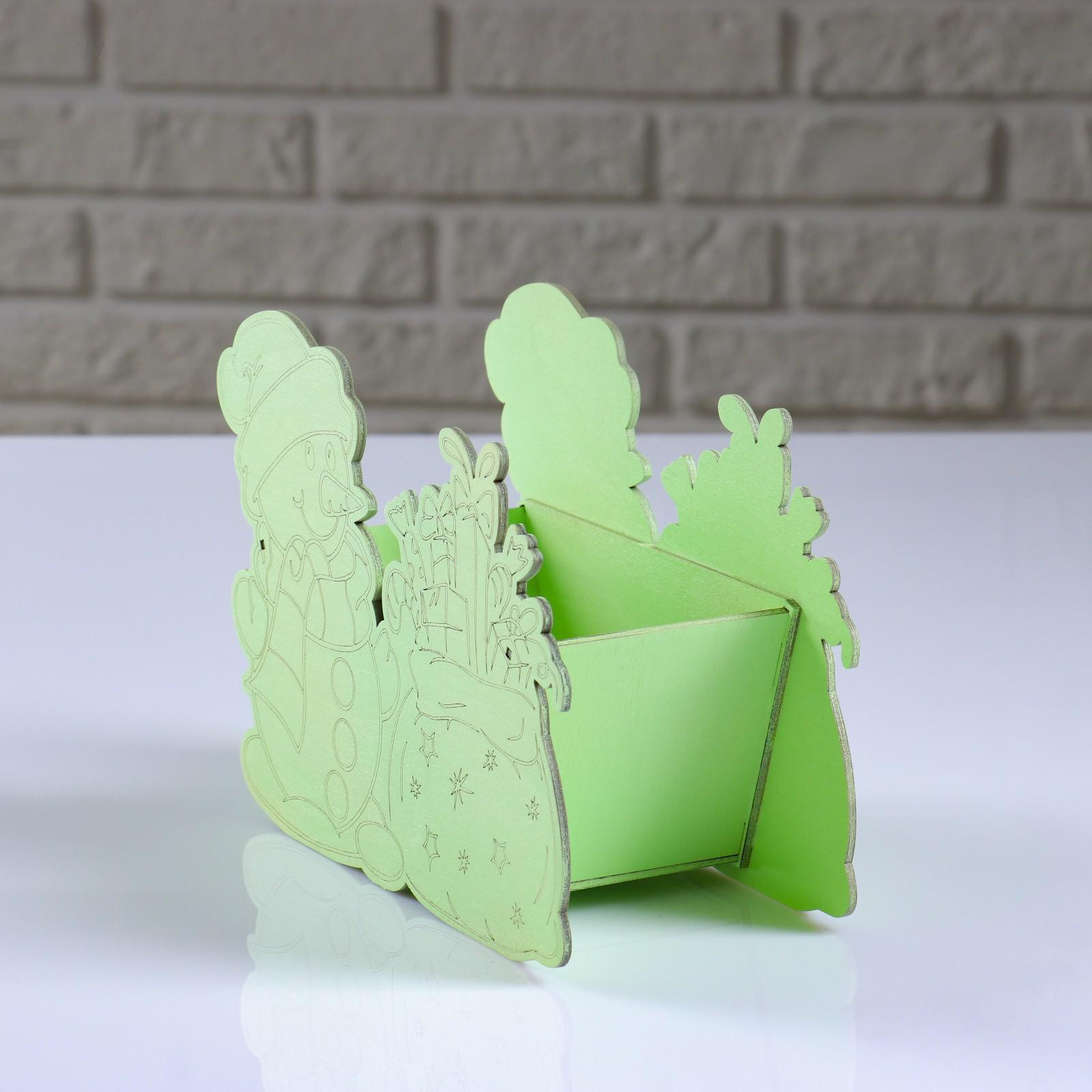 Кашпо деревянное "Снеговик с подарками", салатовый, 21×9.2×15.5 см 5241971