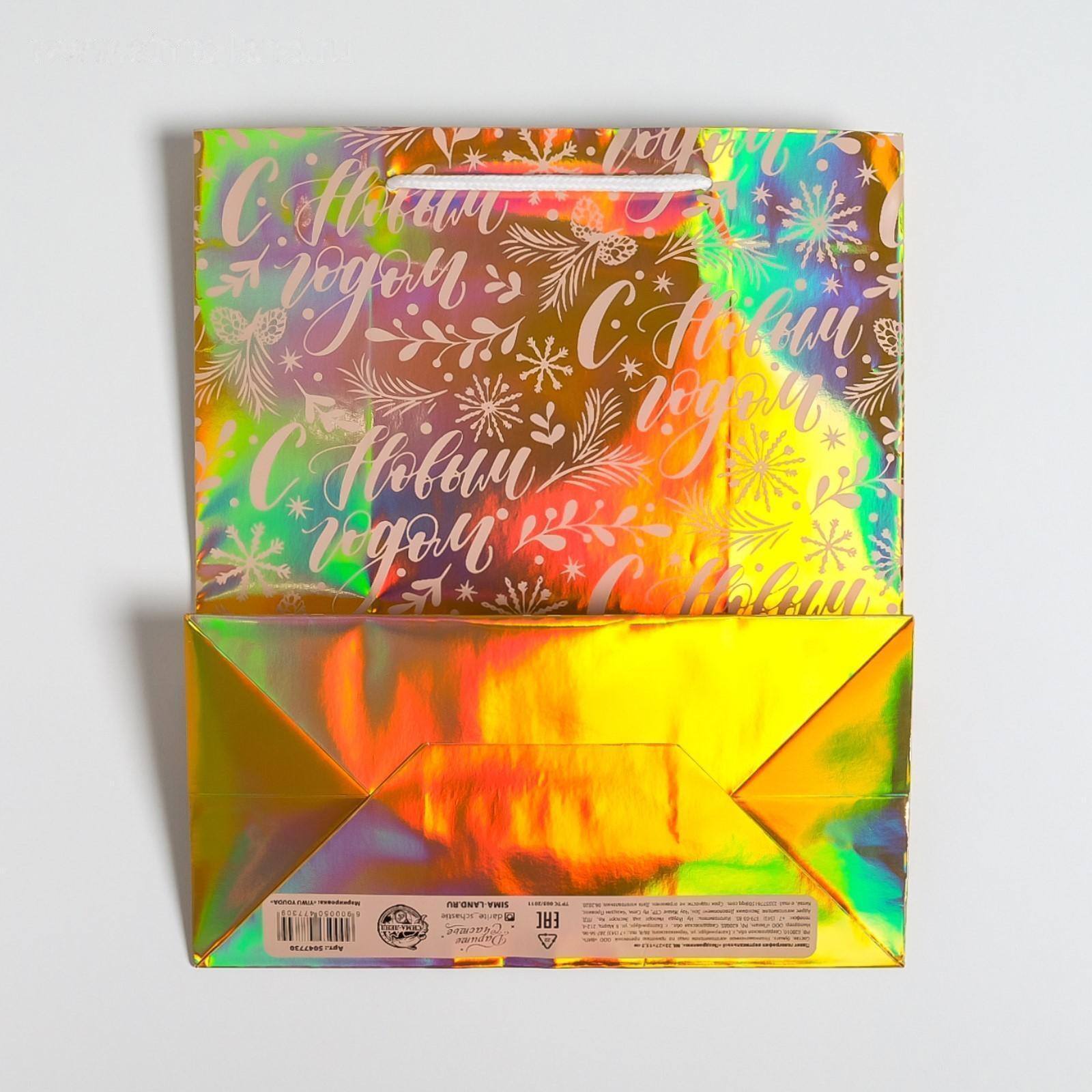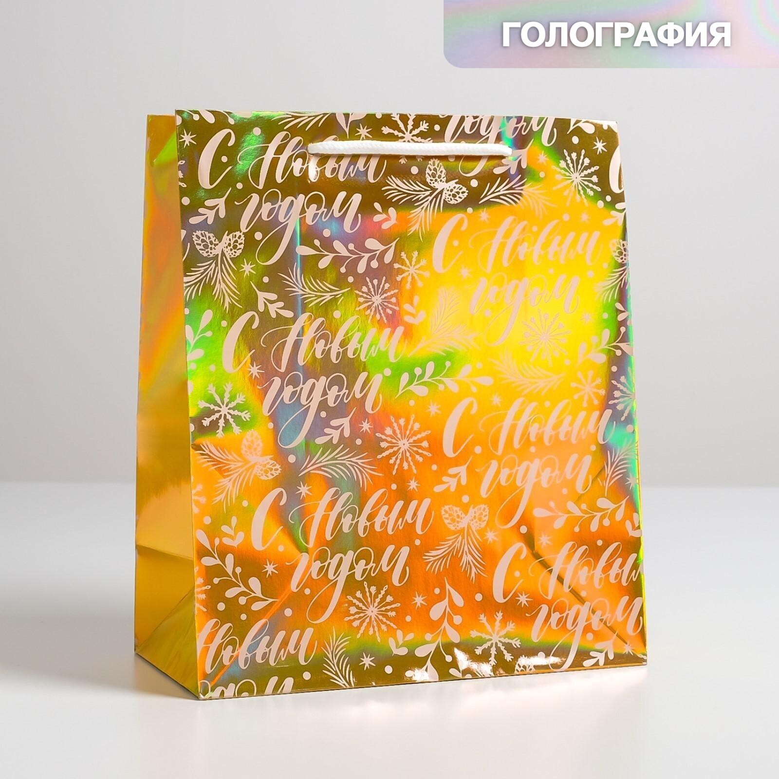 Пакет голография вертикальный «Поздравляю», ML 23 × 27 × 11,5 см 5047730