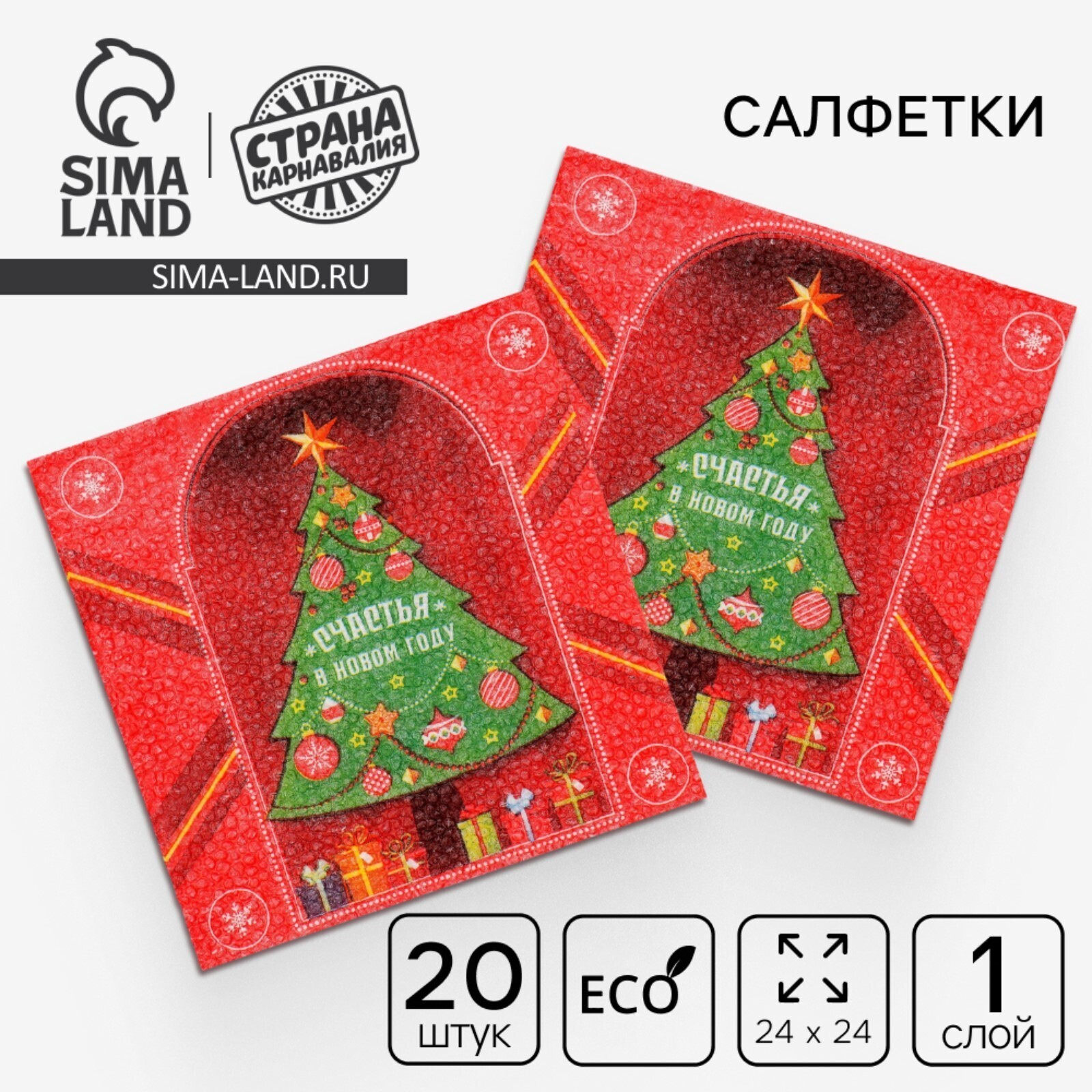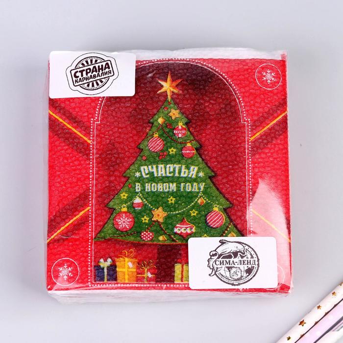 Салфетки бумажные однослойные "Счастья в Новом году", 24х24 см, набор 20 шт. 5067275