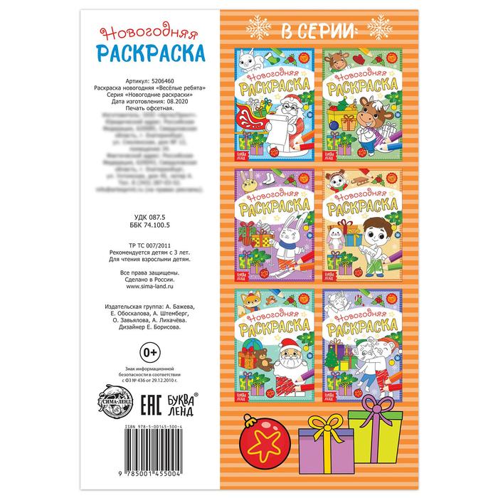 Раскраска новогодняя «Весёлые ребята», 12 стр. 5206460