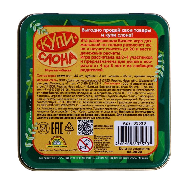 Учитесь считать до 20, вести денежные расчёты и выгодно продавать свои товары вместе с развивающей бизнес-игрой на кубиках для малышей «Купи слона»!