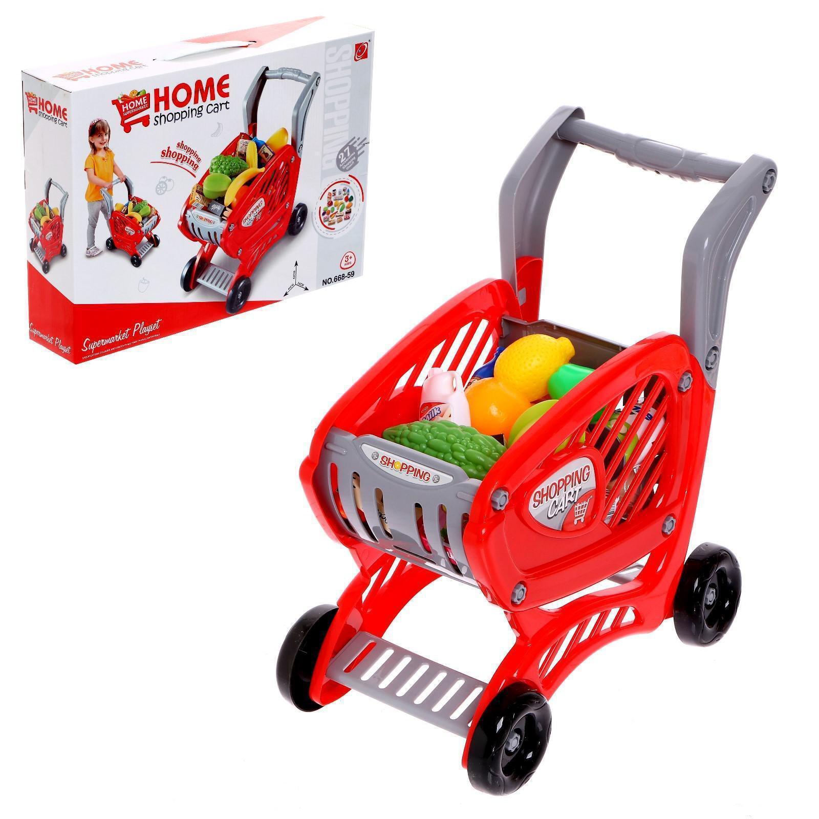 Продуктовая тележка «Шопинг карт» красная, с продуктами, 27 предметов 5081498
