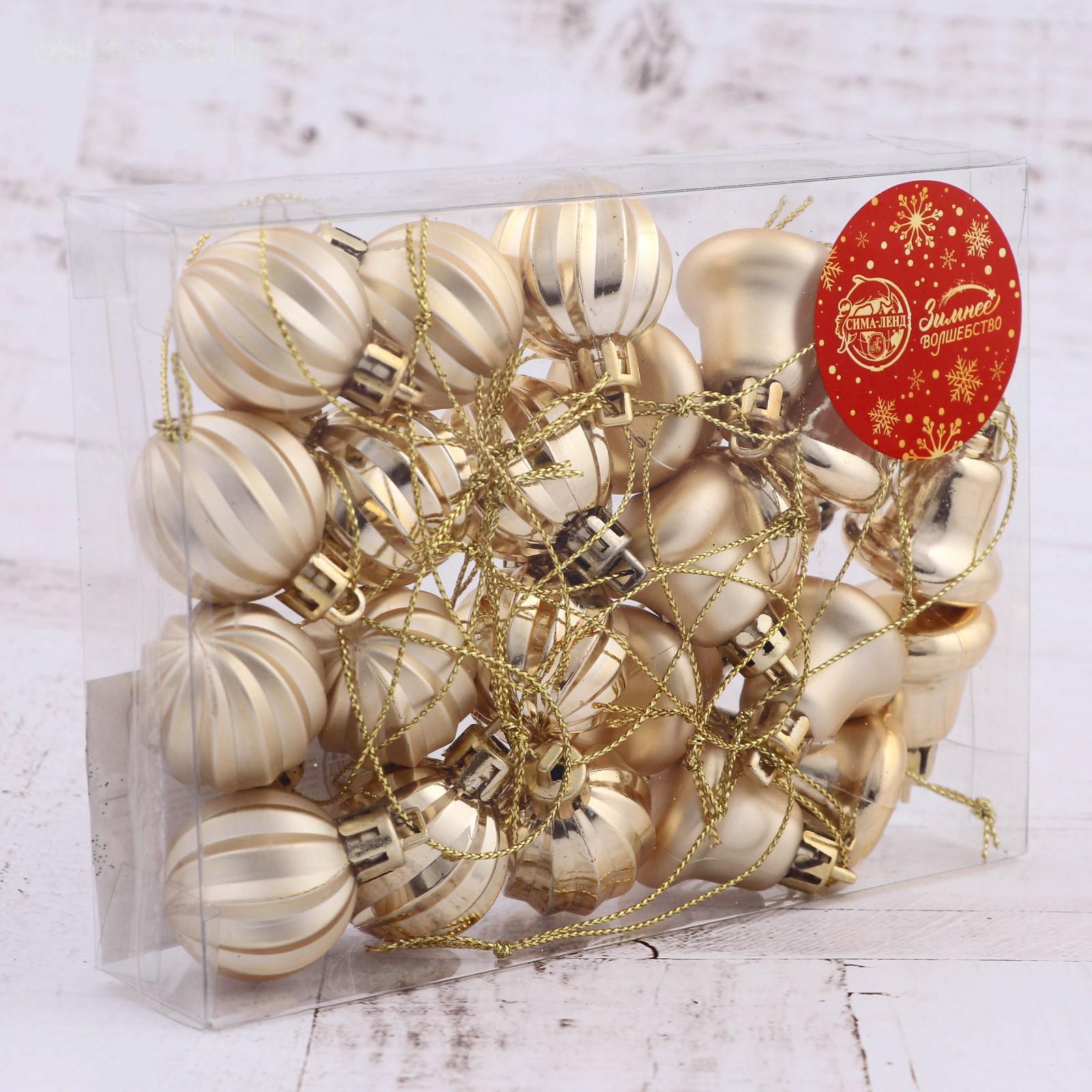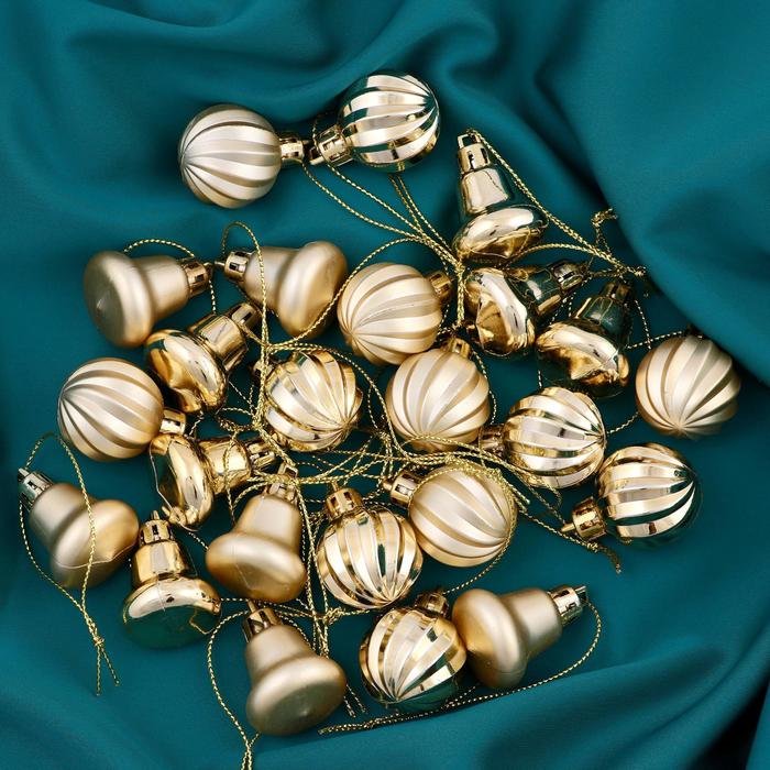 Набор украшений пластик d-3 см, 24 шт "Шарики и колокольчики" золото 5012977