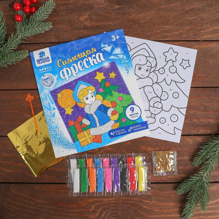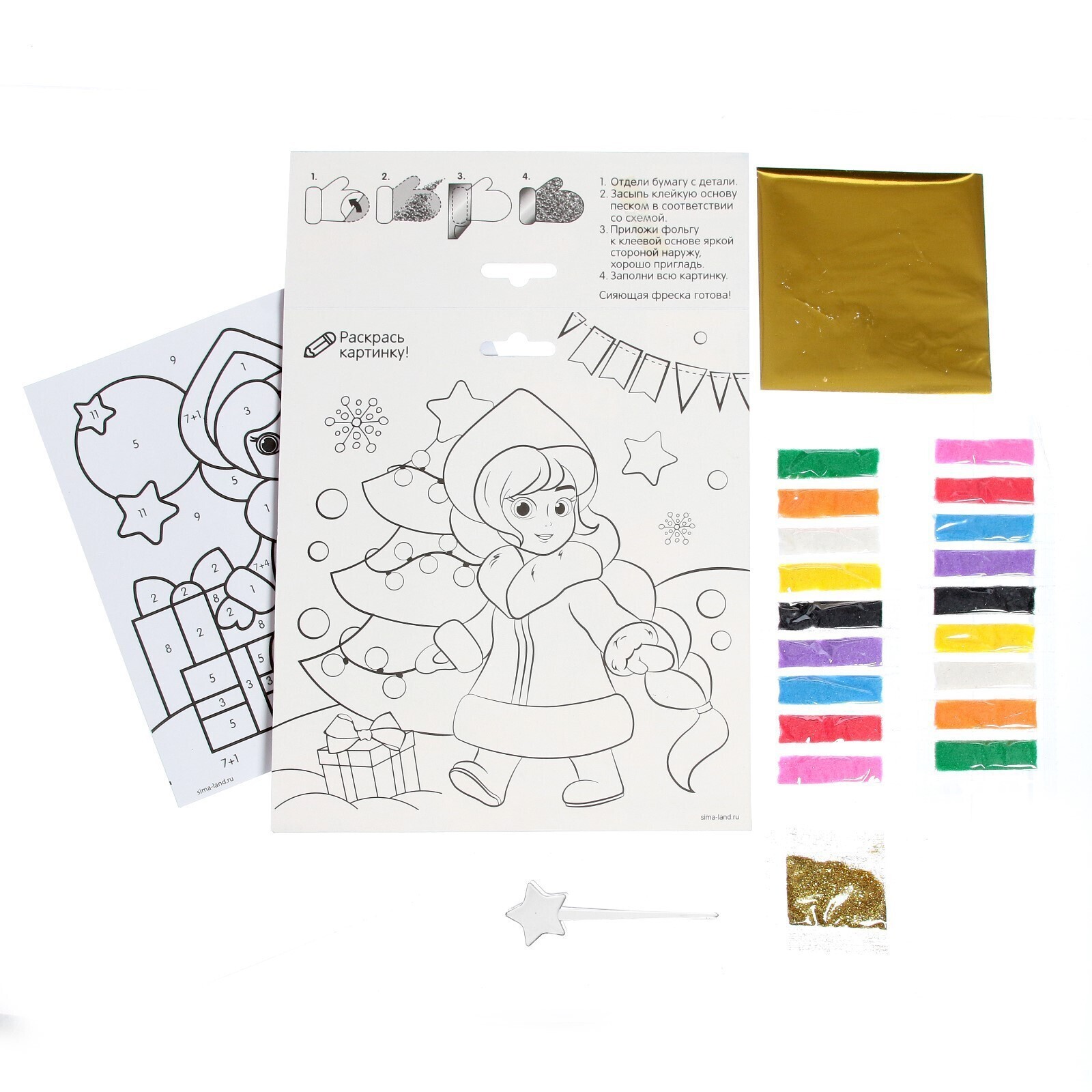 С этим волшебным набором ваш ребёнок сможет создать картину из цветного песка. Фреска станет отличным украшением детской комнаты и объектом гордости маленького художника.
