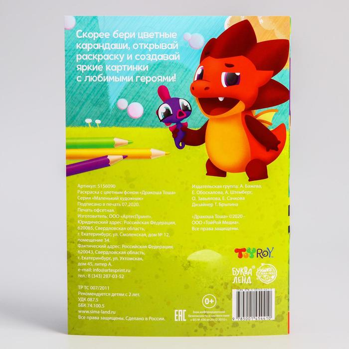Раскраска с цветным фоном "Дракоша Тоша", 16 стр. 5156090