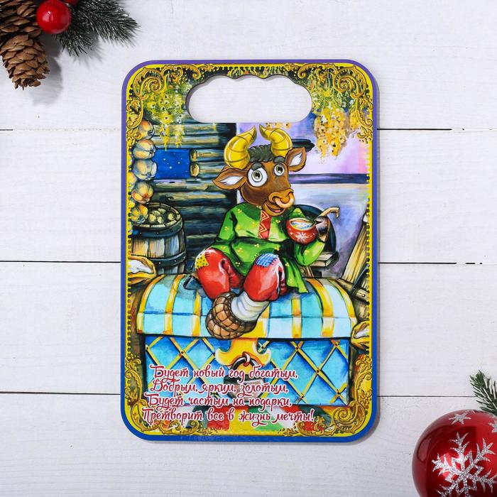 Доска разделочная "Год Быка. Сундук", дерево, 18х27 см 5364881