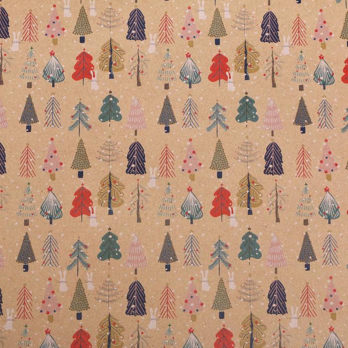 Бумага упаковочная, крафт, "Зимние деревья", 50 х 70 см 5112916