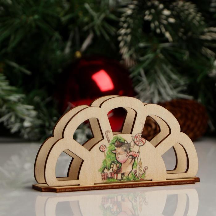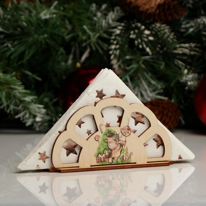 Салфетница "Символ 2021. Бычок у ёлки", 12.5×3.5×6.5 см 5249391