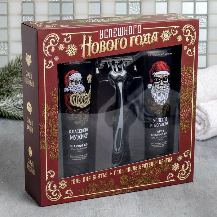 Набор "Успешного Года", гель для бритья, гель после бритья, станок для бритья 4895753