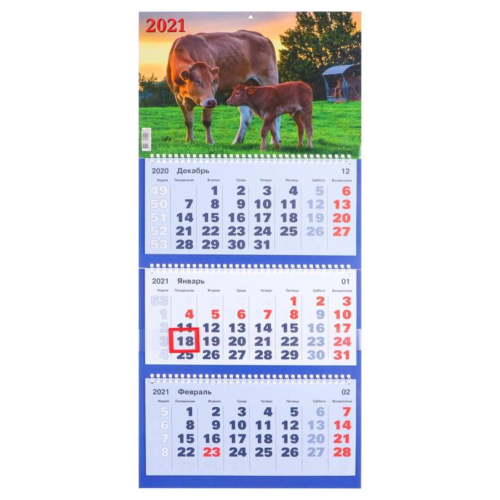 Календари квартальные трио "Символ года, 2021" 31 х 69 см 5390175