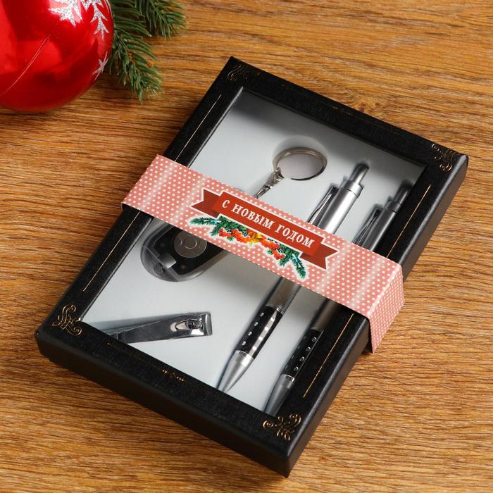 Набор подарочный 4в1 (2 ручки, кусачки, фонарик черный) 5092291