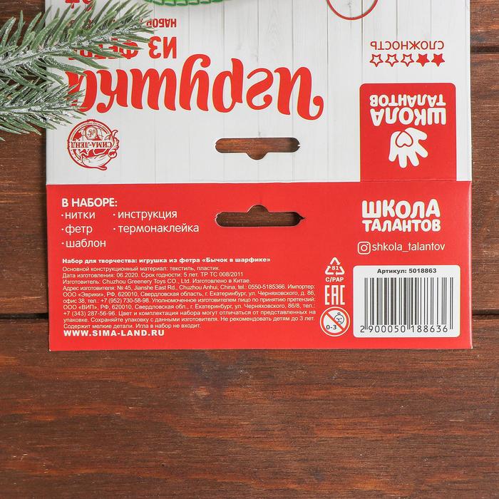 Набор для творчества. Игрушка из фетра «Бычок в шарфике» 5018863
