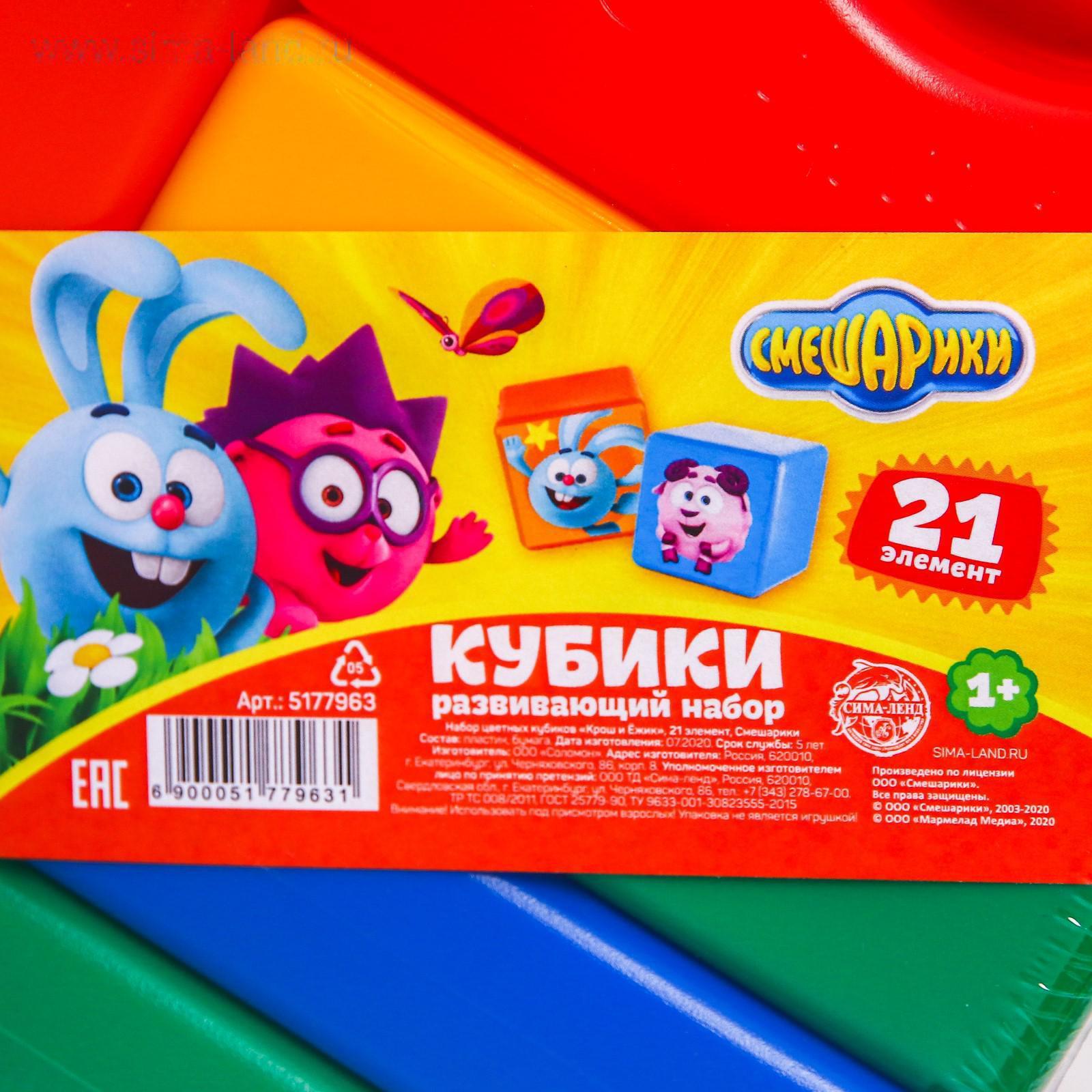 Набор цветных кубиков "Крош и Ёжик", 21 элемент, Смешарики 5177963